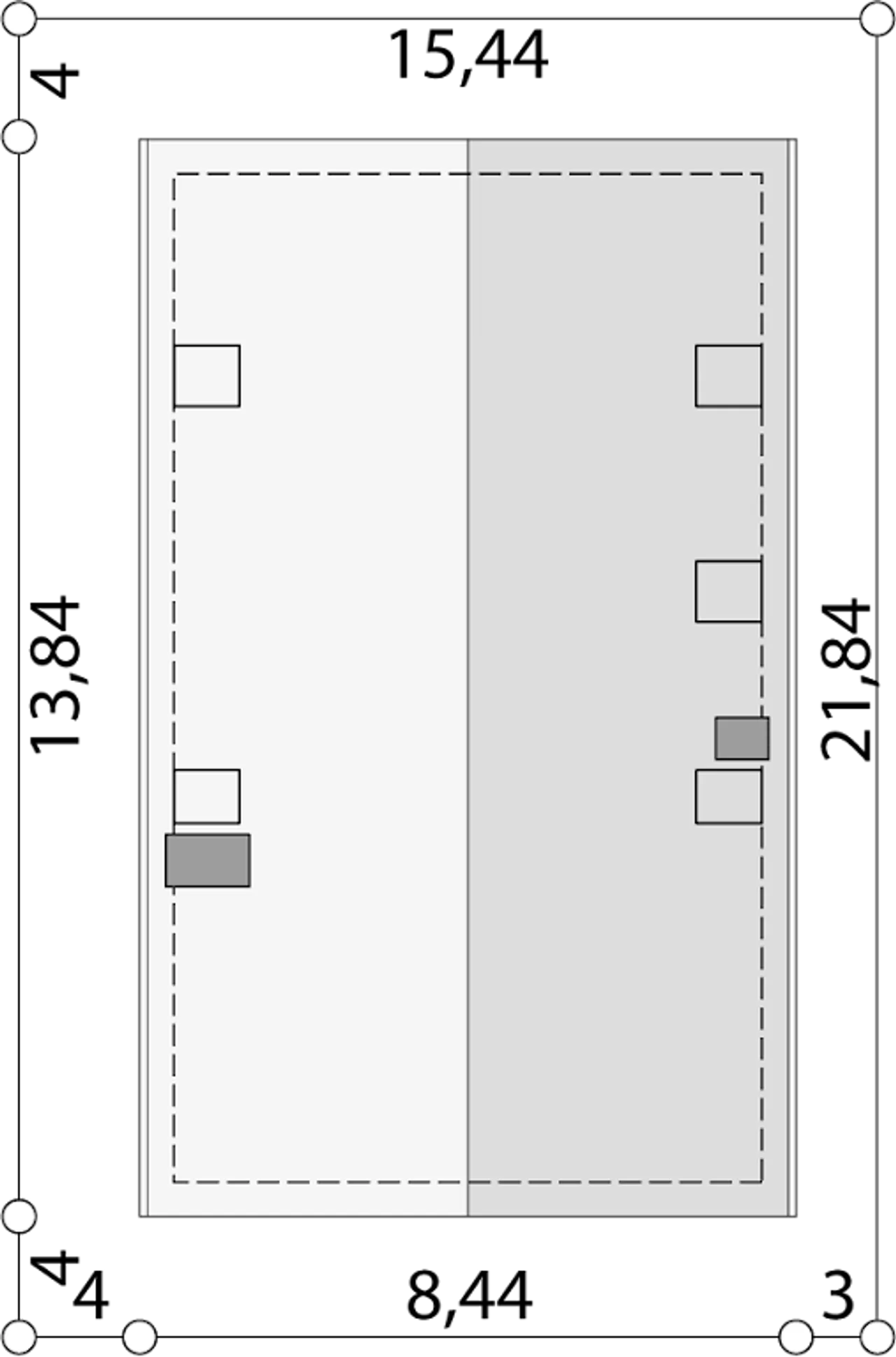 Szerokość działki 15.44 m |