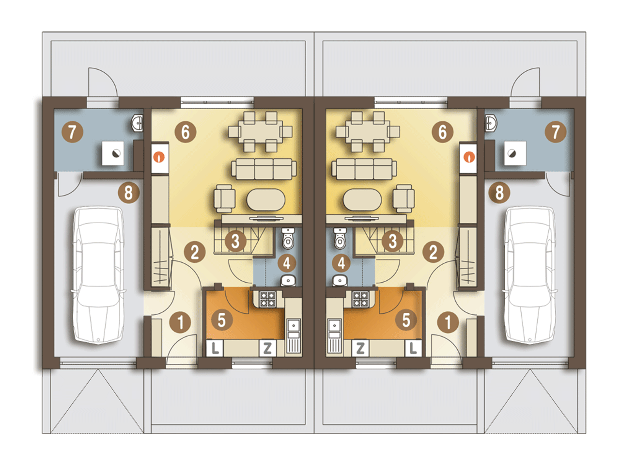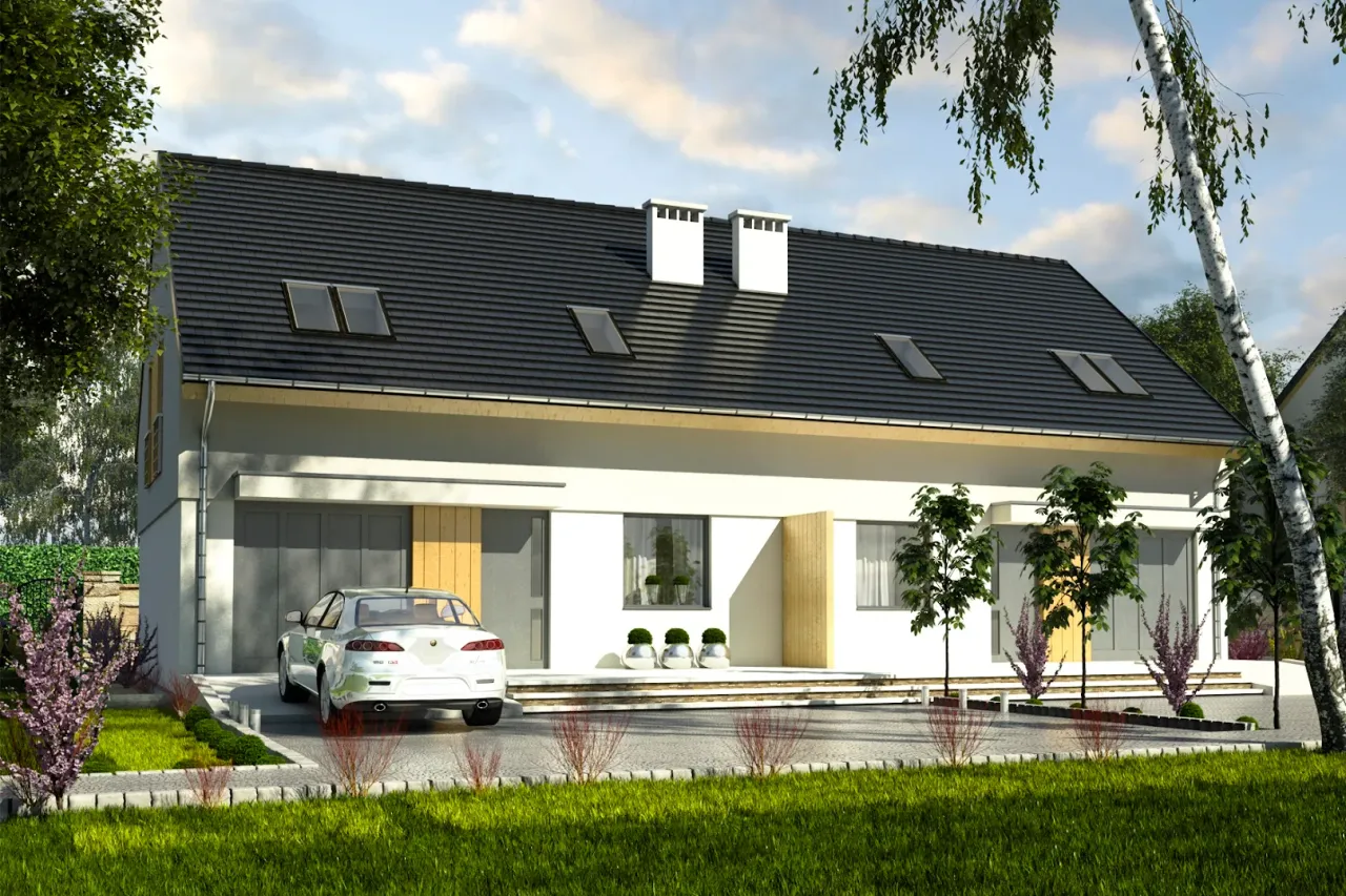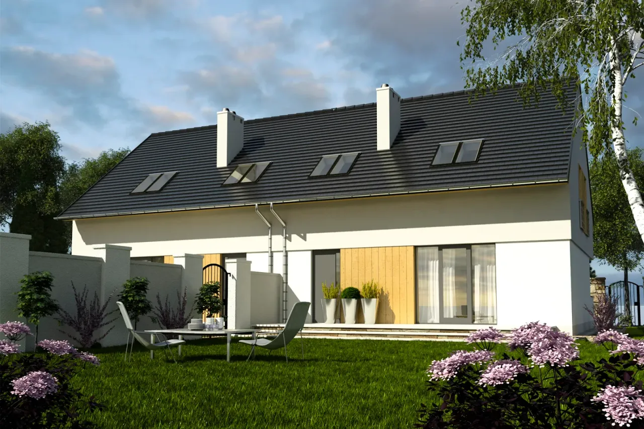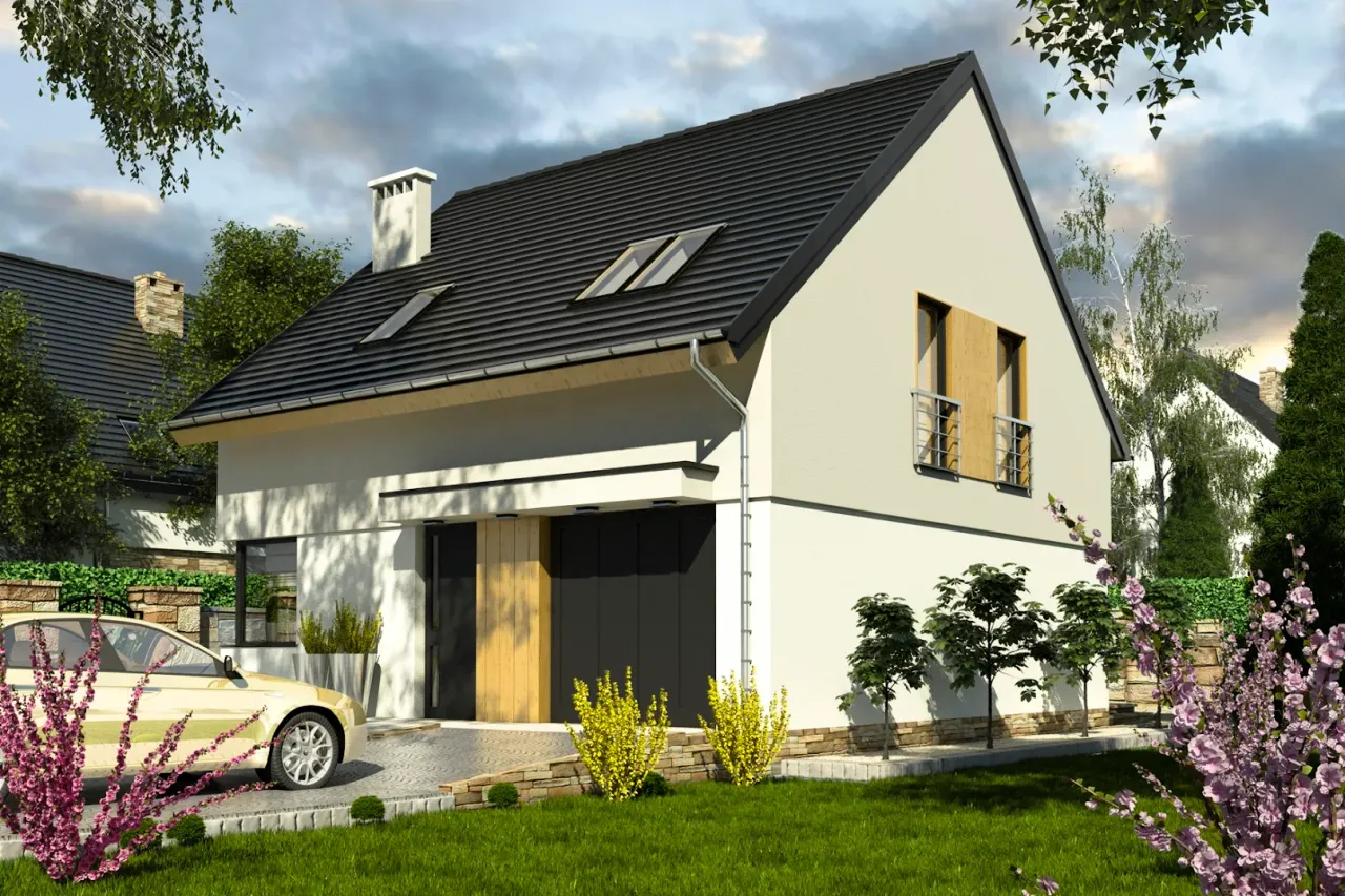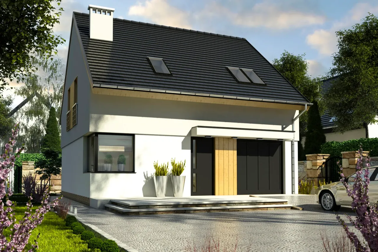 Wypełnij formularz i otrzymaj rysunki w pdf z dokładnymi wymiarami budynku i pomieszczeń (długość, szerokość, wysokość) dla projektu Szczęśliwa z garażem 1-st. bliźniak A-BL2