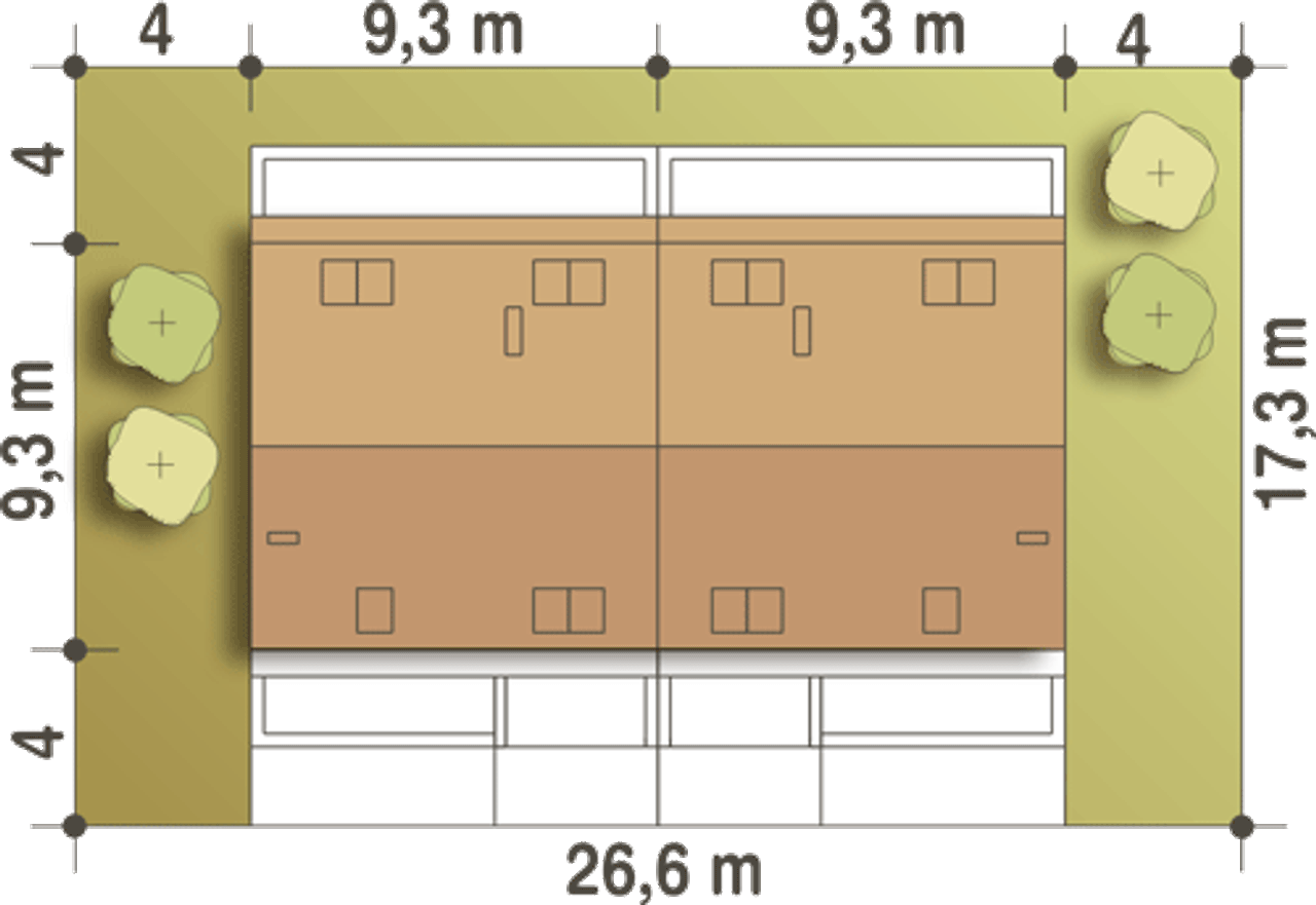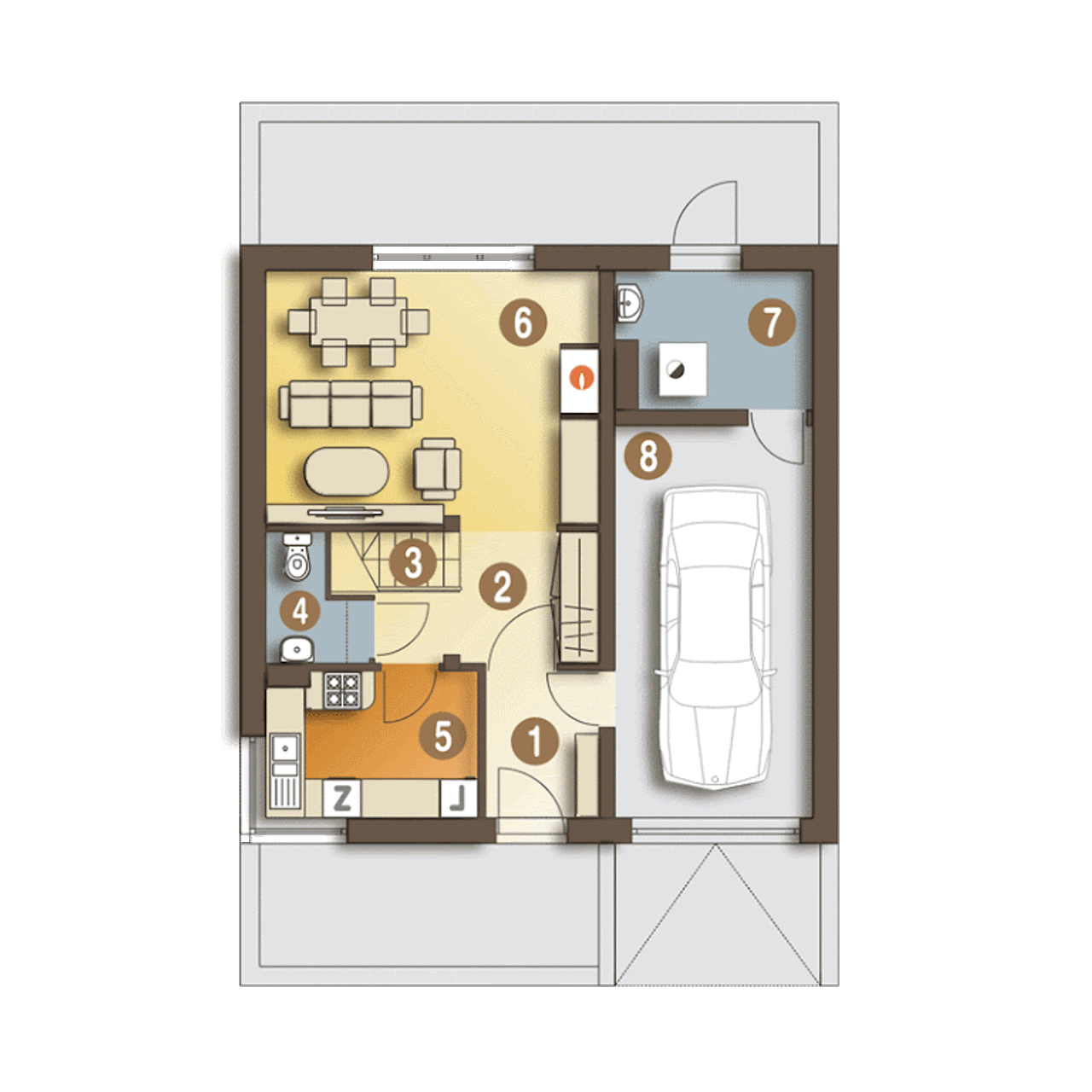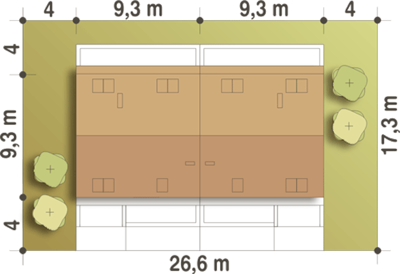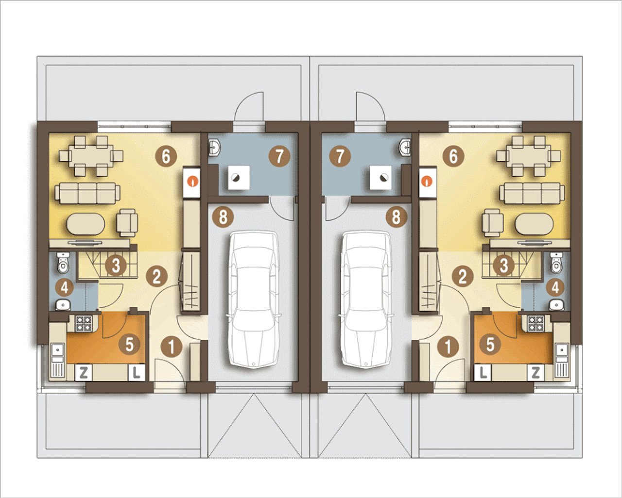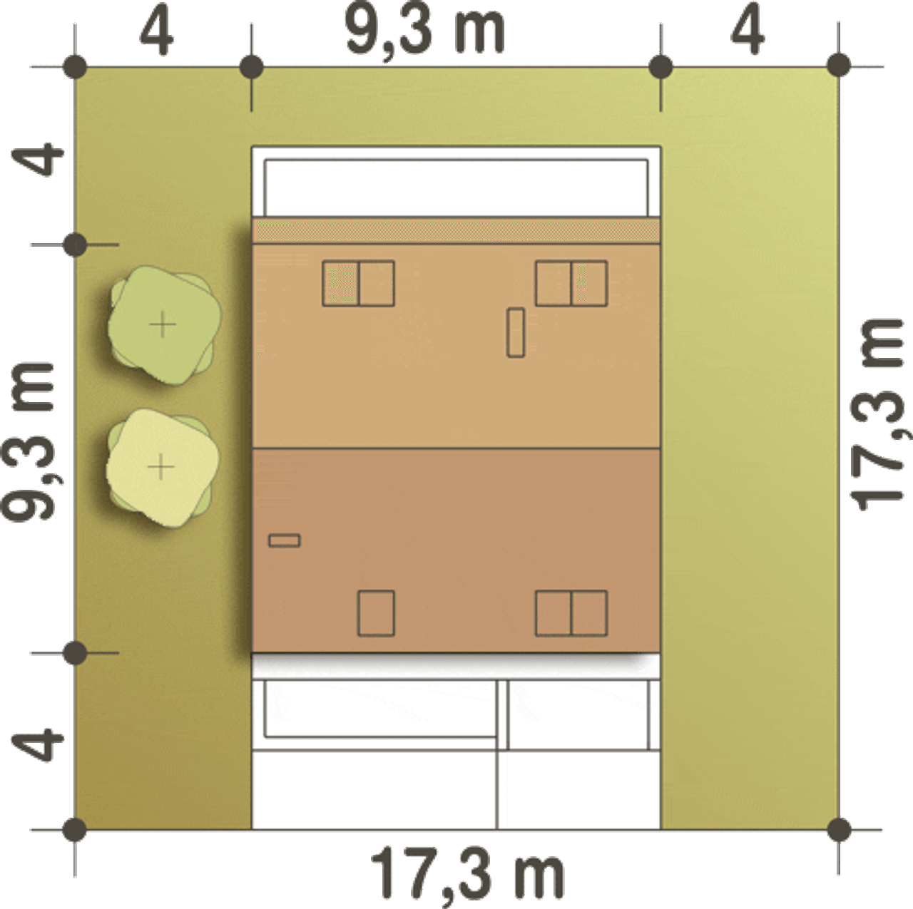 Wypełnij formularz i otrzymaj rysunki w pdf z dokładnymi wymiarami budynku i pomieszczeń (długość, szerokość, wysokość) dla projektu Szczęśliwa z garażem 1-st. bliźniak A-BL2