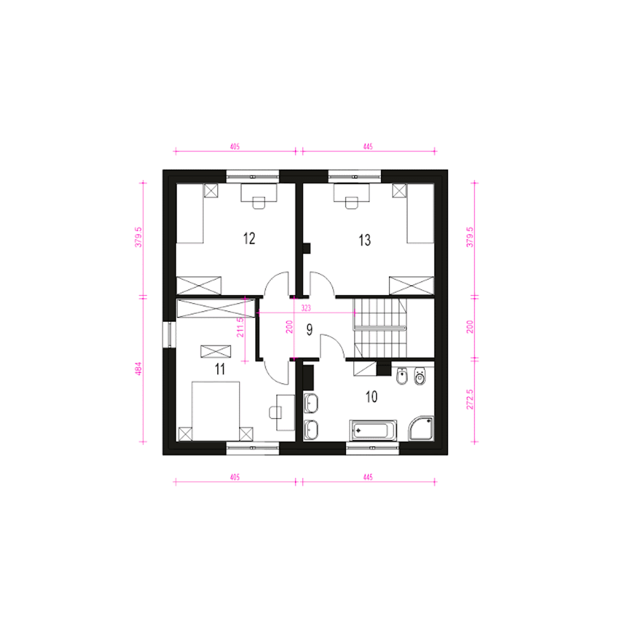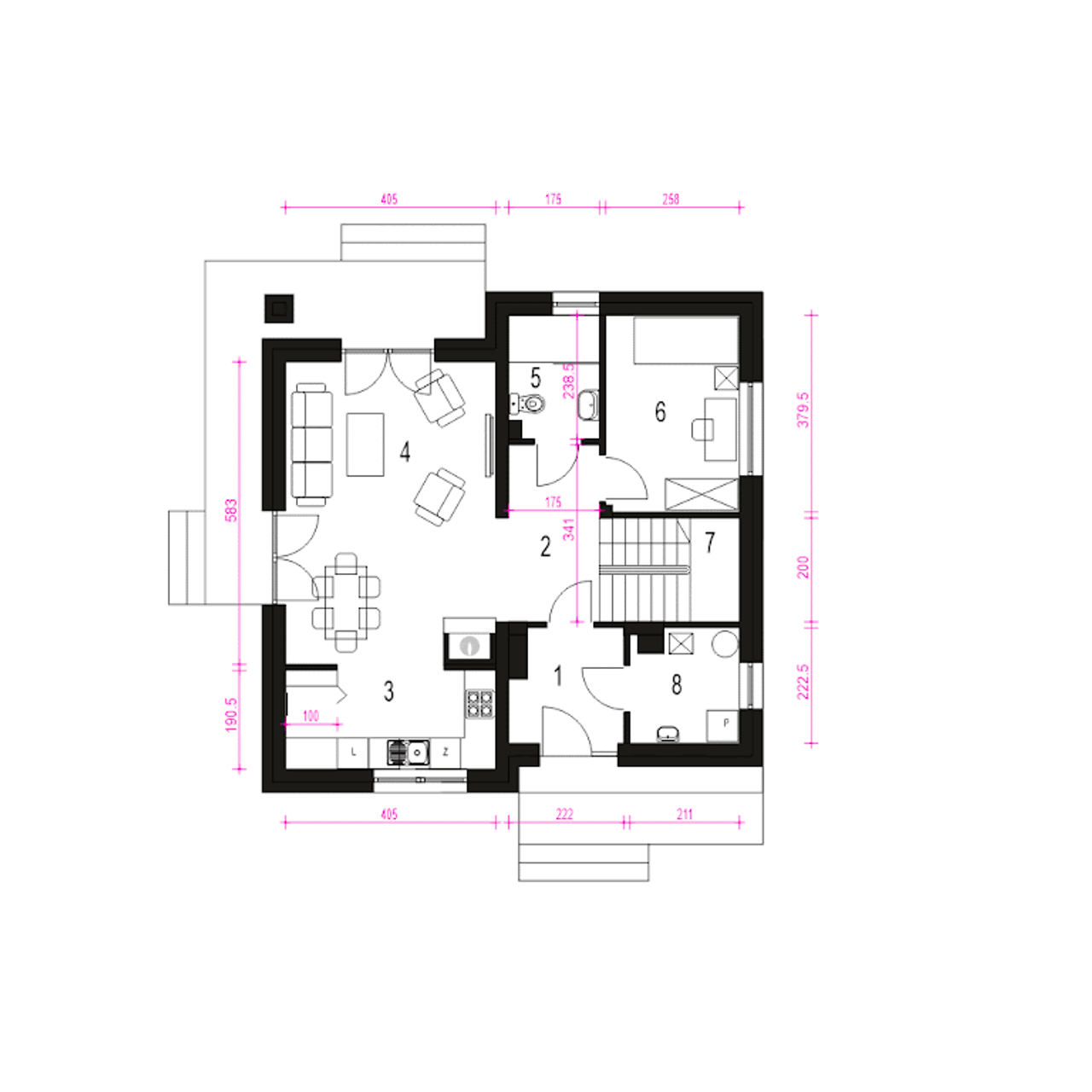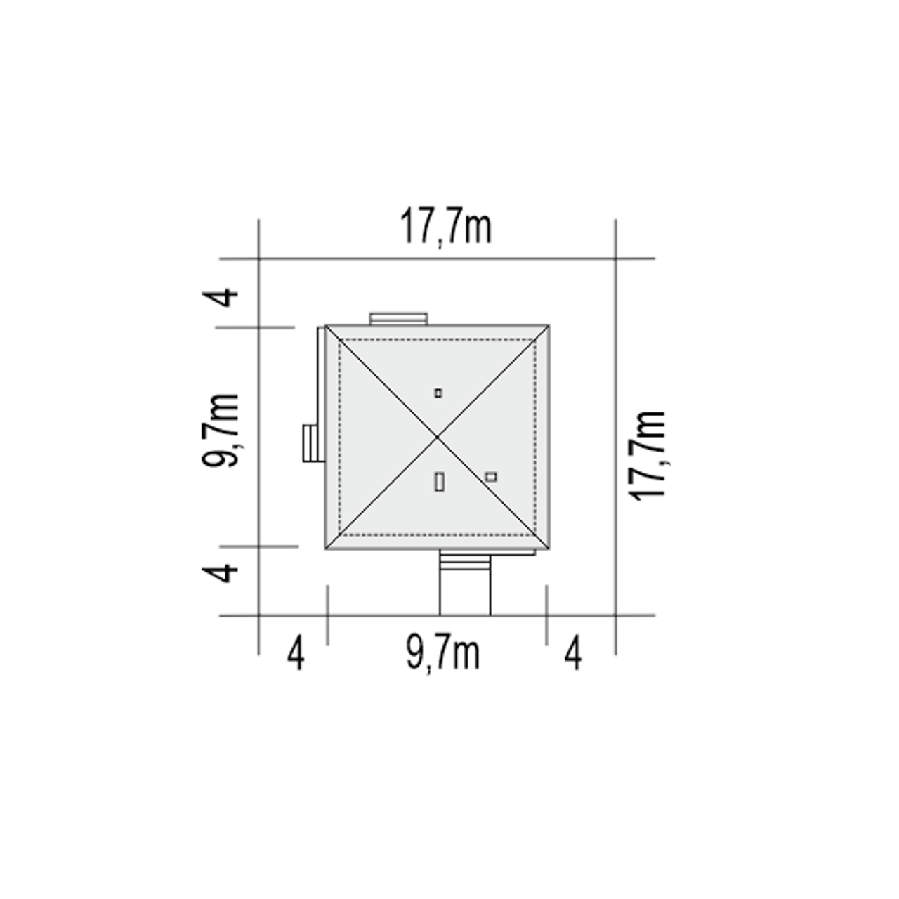 Wypełnij formularz i otrzymaj rysunki w pdf z dokładnymi wymiarami budynku i pomieszczeń (długość, szerokość, wysokość) dla projektu Tadeusz IV bez garażu B