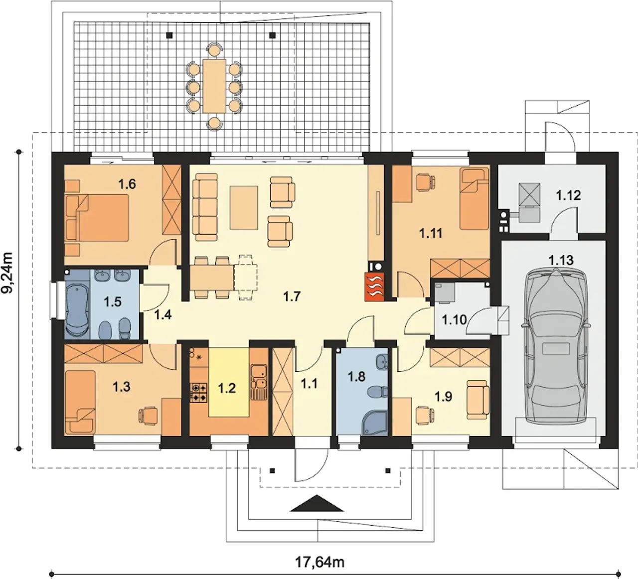 Szerokość budynku 17.64 m |