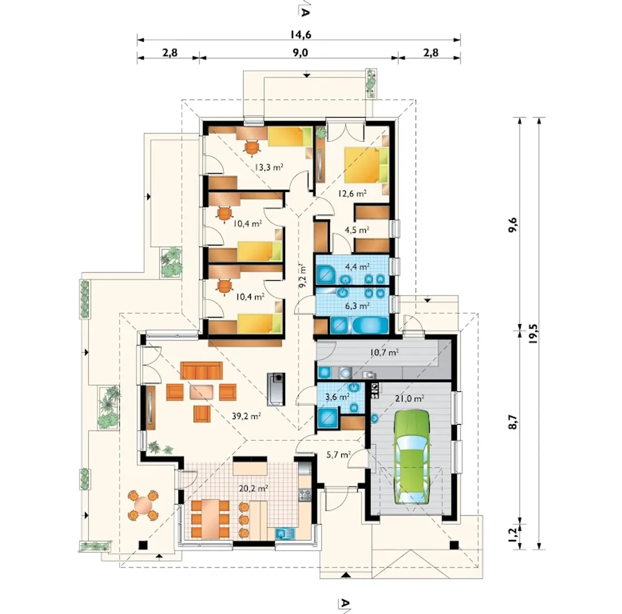 Wypełnij formularz i otrzymaj rysunki w pdf z dokładnymi wymiarami budynku i pomieszczeń (długość, szerokość, wysokość) dla projektu Tamara Polo