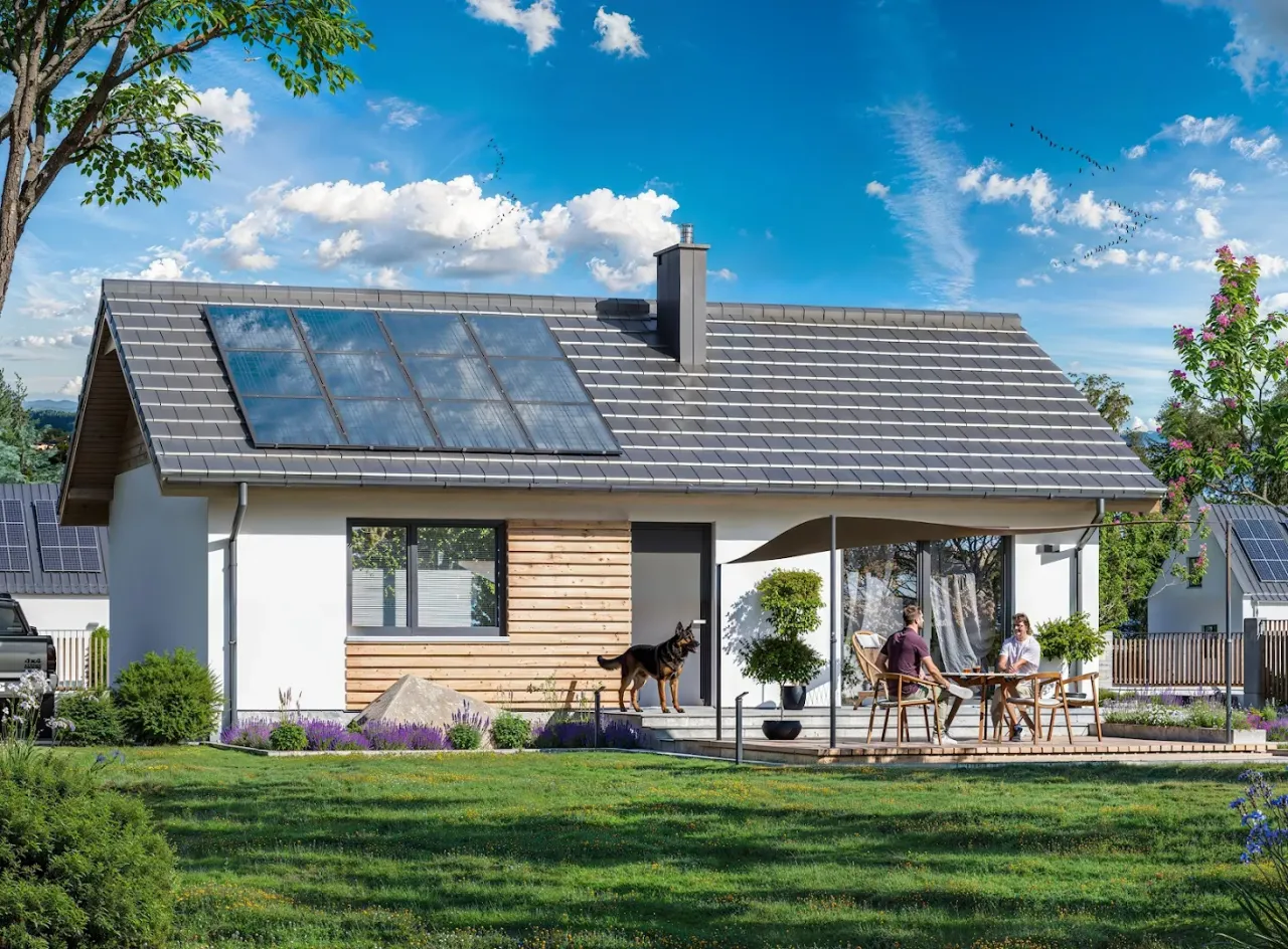Dom Tania 2 to projekt dla inwestorów szukających sprawdzonych i trwałych rozwiązań. Drewniany strop oraz więźba dachowa w połączeniu z pokryciem z dachówki ceramicznej lub cementowej gwarantują solidność i estetyczny wygląd przez długie lata. Komfort użytkowania podnosi także wydajne ogrzewanie na bazie pompy ciepła lub gazu ziemnego oraz nowoczesne instalacje.