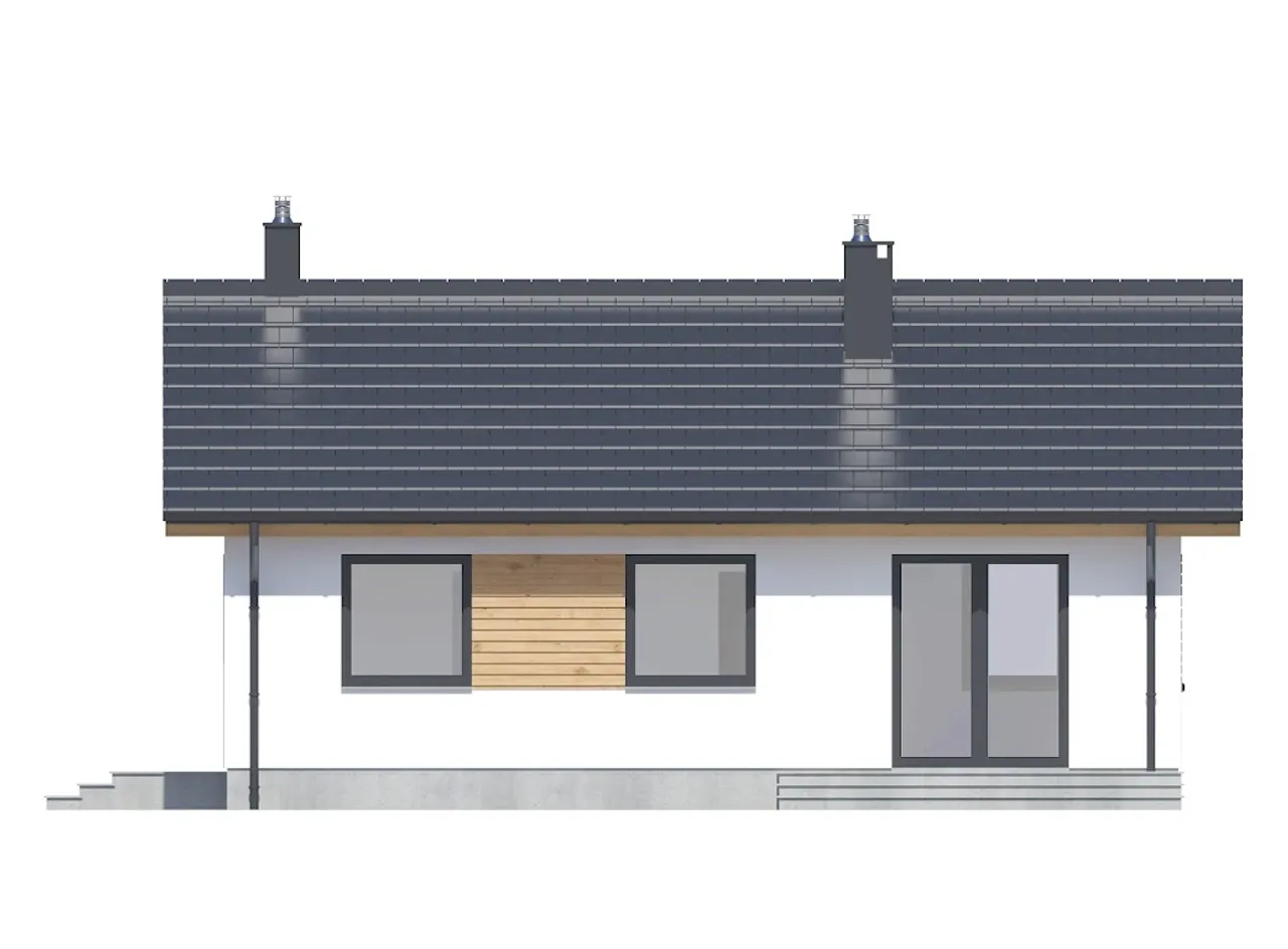 parterowy Projekt Tania 5, wykorzystujący paliwo stałe, wyróżnia się swoją elegancją. Prosty kształt budynku przyciąga uwagę i fascynuje. Drewniane detale dodają elewacji wyjątkowego uroku. Dzięki dużym oknom wnętrze jest pełne naturalnego światła. Przemyślana powierzchnia użytkowa zachęca do kreatywnego planowania przestrzeni, a funkcjonalne rozmieszczenie pomieszczeń robi duże wrażenie. Budynek harmonijnie wpisuje się w każdy krajobraz. Taras stanowi idealne miejsce do odpoczynku na świeżym powietrzu. Rozważam zakup tego projektu i budowę wymarzonego domu.