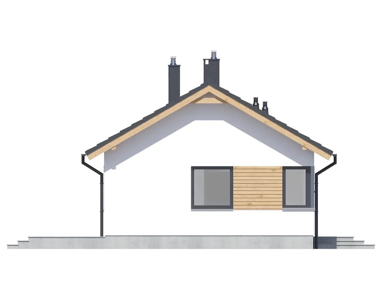 Projekt domu jednorodzinnego Tania 5 paliwo stałe wyróżnia się ponadczasowym wyglądem, dwuspadowym dachem i zwartą bryłą. Konstrukcja oparta na betonowych fundamentach gwarantuje stabilność przez lata, a przemyślane materiały - beton komórkowy w połączeniu z grubą warstwą styropianu - pomagają wyraźnie ograniczyć wydatki na ogrzewanie.