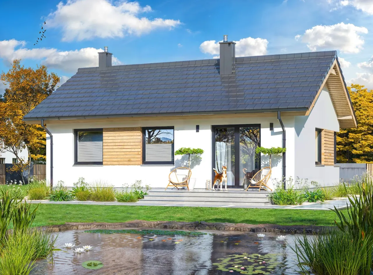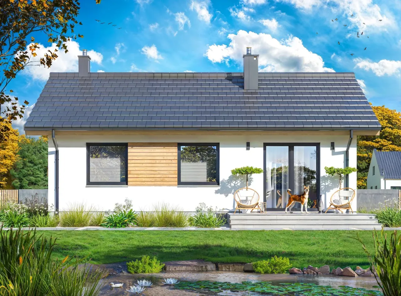 Budowa przewiduje pokrycie dachu efektywną dachówką cementową lub ceramiczną, co zwiększa trwałość całego budynku. Drewniana więźba dachowa podkreśla naturalny charakter wnętrza. Parterowy rozkład i trzy wygodne pokoje to doskonała propozycja zarówno dla rodzin z dziećmi, jak i par poszukujących uniwersalnych rozwiązań. Ogrzewanie paliwem stałym (biomasą) umożliwia korzystanie z tanich, lokalnych źródeł energii. Dom wybudowany na podstawie projektu Tania 5 paliwo stałe będzie niezawodnym wyborem dla inwestorów oczekujących stabilności i nowoczesnych rozwiązań.
