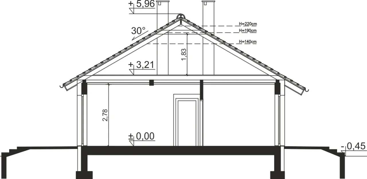 Dom nie posiada garażu ani podpiwniczenia, co pozwala optymalnie zagospodarować przestrzeń działki. Projekt przewiduje ogrzewanie gazowe lub na paliwo stałe - możesz dopasować technologię do swoich potrzeb. Wstawiono tradycyjny strop drewniany, a konstrukcję dachu stanowi trwała więźba drewniana pokryta dachówką cementową lub ceramiczną. Rzetelna technologia ścian gwarantuje wysoki poziom energooszczędności, a wentylacja grawitacyjna z opcjonalnym systemem rekuperacji umożliwia zachowanie zawsze świeżego powietrza w domu.