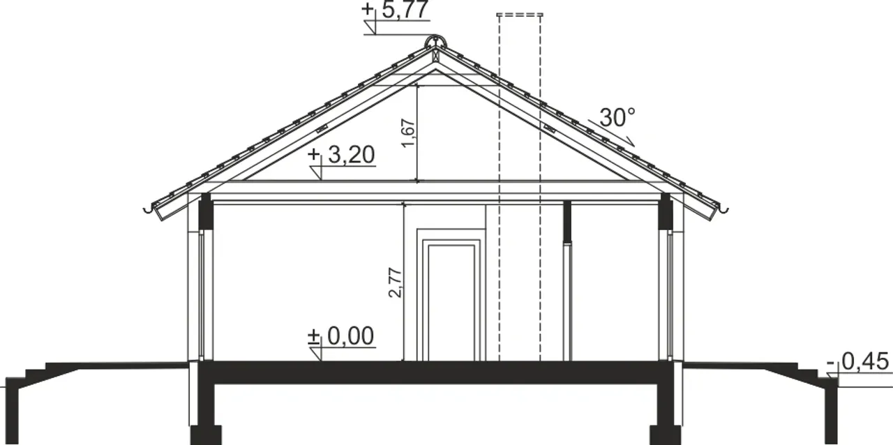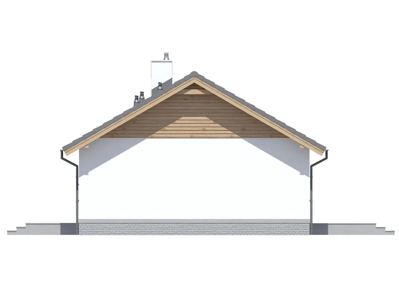 Nowoczesny dach dwuspadowy o kącie nachylenia 30° sprawia, że bryła domu prezentuje się lekko i elegancko. Wybór pomiędzy pokryciem z dachówki cementowej lub ceramicznej pozwala dopasować wygląd do swoich upodobań. Dodatkowym atutem jest wentylacja grawitacyjna z opcją rekuperacji - zyskujesz świeże powietrze i oszczędności energetyczne. Dom wybudowany na podstawie projektu Tebe Energo będzie odpowiedni także dla rodzin planujących energooszczędną przyszłość.