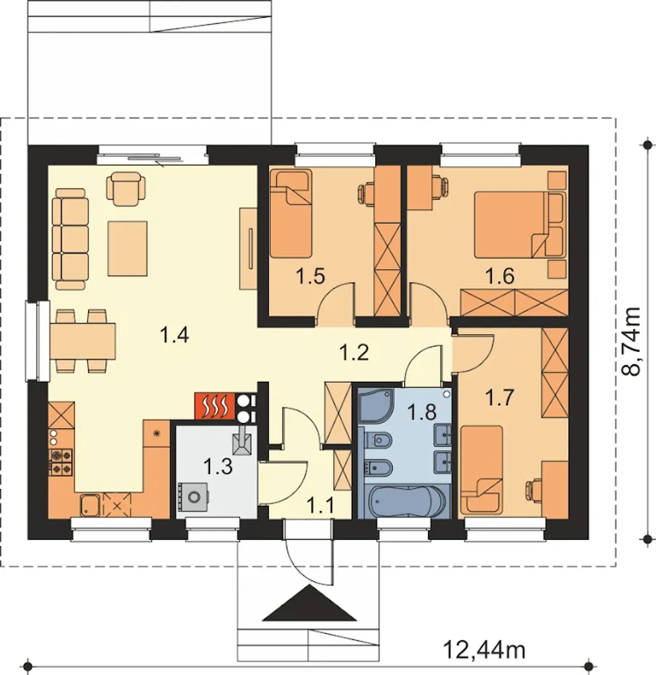 Szukasz sprawdzonego projektu domu parterowego bez garażu z możliwością efektywnego ogrzewania oraz nowoczesnych rozwiązań energooszczędnych? Projekt Tebe Energo spełni oczekiwania rodzin ceniących trwałość, praktyczność i ponadczasową estetykę. Zyskaj przestrzeń idealnie dopasowaną do codziennych potrzeb i wybuduj dom, który pozostanie funkcjonalny i oszczędny przez pokolenia.