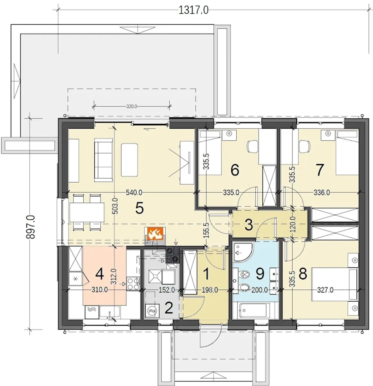 Wypełnij formularz i otrzymaj rysunki w pdf z dokładnymi wymiarami budynku i pomieszczeń (długość, szerokość, wysokość) dla projektu Terrier 6 bez garażu