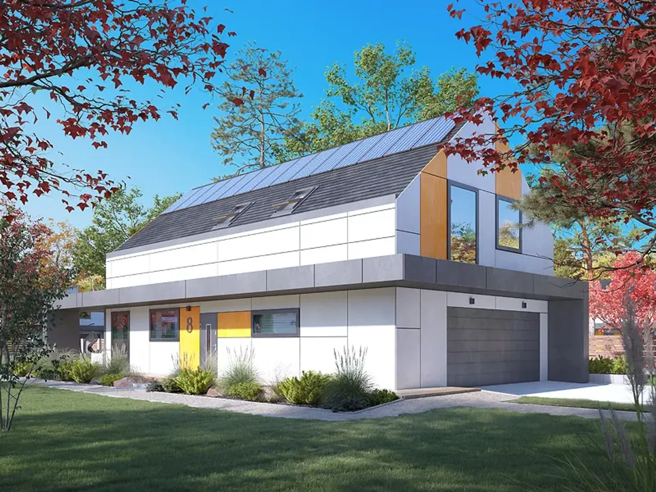 Kupując projekt w technologii murowanej powinieneś budować dom murowany. Zupełna zmiana technologii na szkieletową wymaga przeprojektowania całego budynku ( zmieniają się obciążenia, fundamenty, konstrukcja dachu). Wydamy zgodę na takie przeprojektowanie jednak wiążę się to z dużymi kosztami. Istnieją firmy wykonawcze, które podejmują się zmiany technologii budowy bezpłatnie przy skorzystaniu z ich usług wykonawczych. Zdarza się, że pracownia architektoniczna przygotowuje warianty konkretnego projektu przewidując także inne technologie. Prosimy o sprawdzenie czy istnieje poszukiwana wersja projektu, w zakładce - warianty projektu.