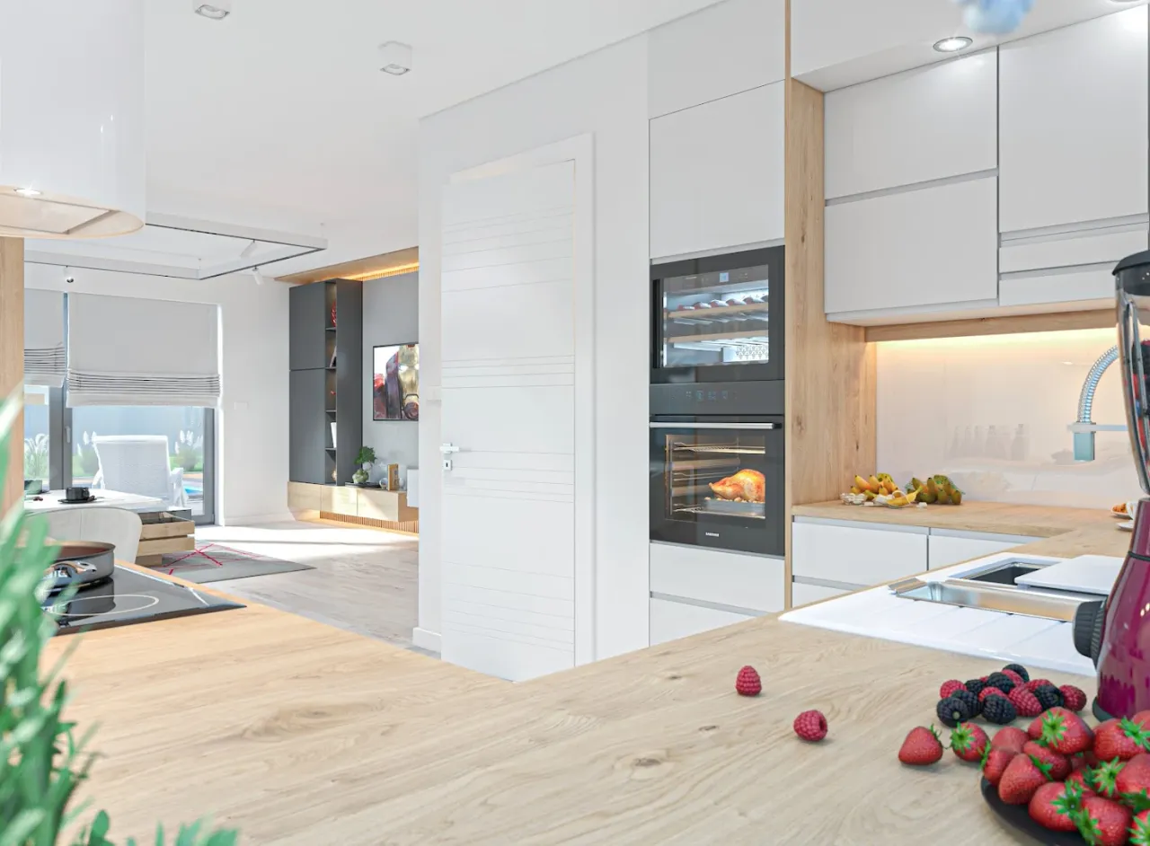 Projekt Tiara 2 powstał z myślą o rodzinach, które cenią funkcjonalność i solidność. Dom nie posiada garażu, co daje większą swobodę aranżacji działki, a jednocześnie sprzyja integracji przestrzeni ogrodowej z budynkiem dzięki wygodnemu tarasowi.