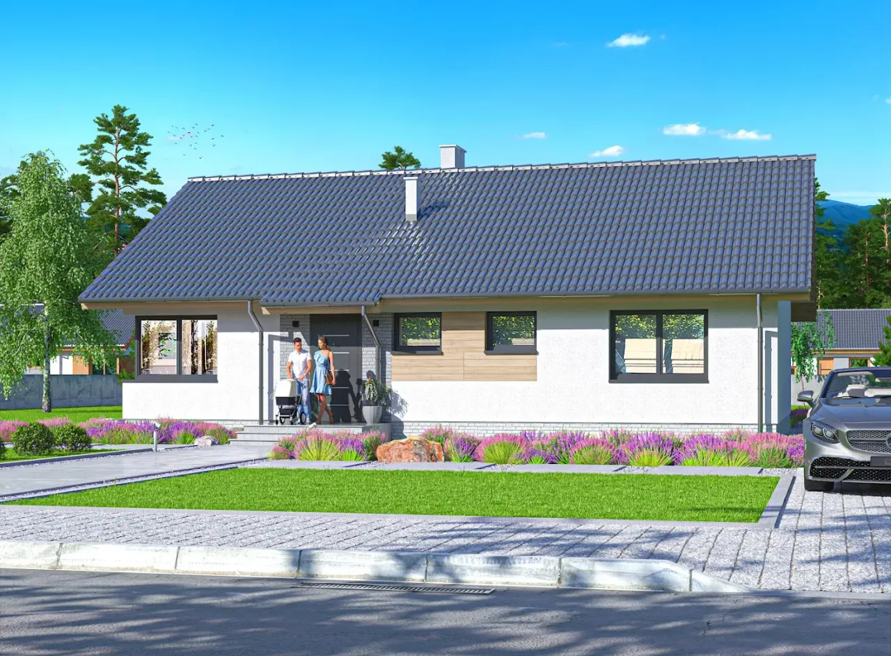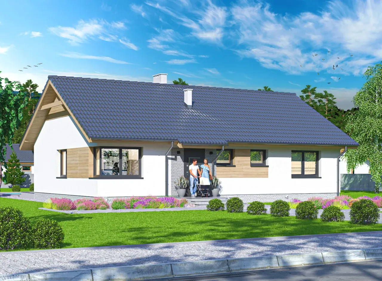Prosta bryła, przemyślana przestrzeń i nowoczesne rozwiązania - taki jest dom, który możesz zbudować na podstawie projektu Tiara 2. Przyjrzyj się propozycji, która idealnie wpisuje się w potrzeby rodziny szukającej przytulnego, parterowego domu z czterema pokojami i funkcjonalnymi dodatkami.