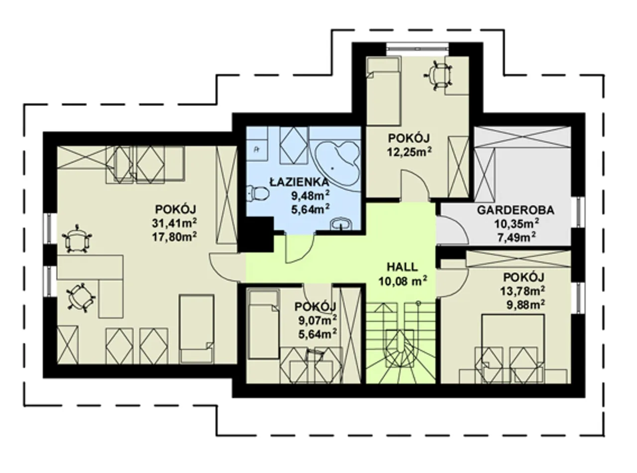 1. Pokój | 17,80 (31,41) m² |