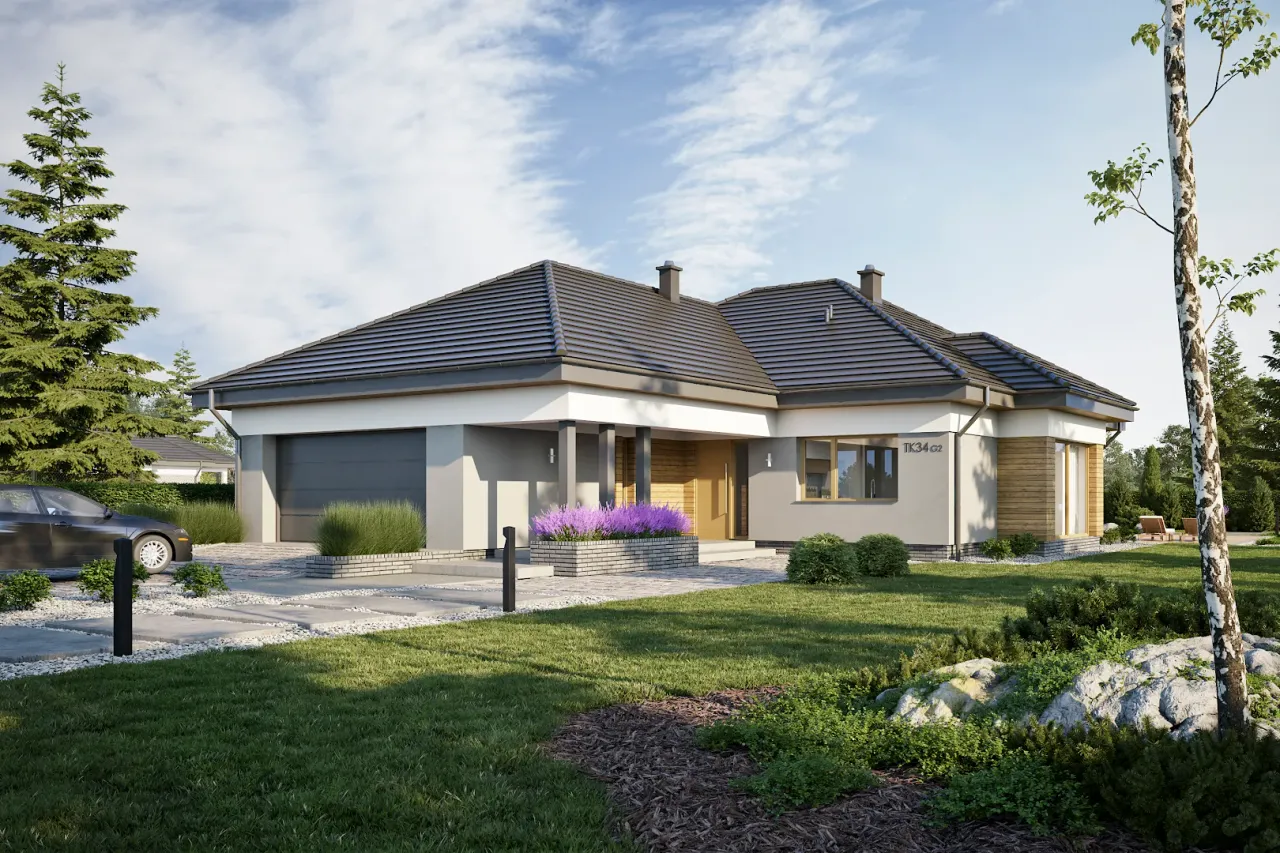 Projekt domu TK 34g2 wydaje się być dobrze przemyślanym rozwiązaniem dla rodziny ceniącej sobie zarówno funkcjonalność, jak i nowoczesny design. Architektura budynku łączy w sobie elegancję i prostotę, co sprawia, że dom prezentuje się bardzo atrakcyjnie. Wnętrze zostało zaprojektowane w sposób umożliwiający wygodne codzienne funkcjonowanie – przestronne i dobrze doświetlone pomieszczenia mogą sprzyjać poczuciu komfortu. Ponadto, zastosowanie dużych przeszkleń nie tylko wzbogaca estetykę, ale również pozwala na lepsze wykorzystanie naturalnego oświetlenia, co jest zarówno praktyczne, jak i energooszczędne. Projekt ten wydaje się być trafnym wyborem dla osób poszukujących domu, który będzie nowoczesny, ale także funkcjonalny.