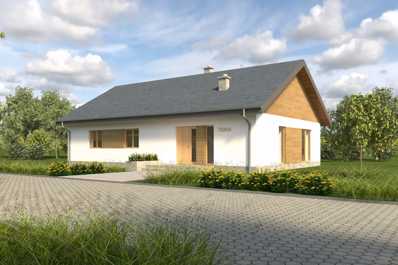 Projekt TK 85A stanowi doskonały przykład nowoczesnej architektury. Dom urzeka swoją prostotą i elegancją, a jego jasna elewacja przyciąga spojrzenia. Przemyślany układ wnętrz zapewnia wygodę użytkowania, a duże okna wpuszczają do środka mnóstwo naturalnego światła. Dach został zaprojektowany tak, aby idealnie komponować się z formą budynku. Projekt ten z pewnością wyróżnia się swoją oryginalnością i rozważam jego zakup oraz budowę tego domu.