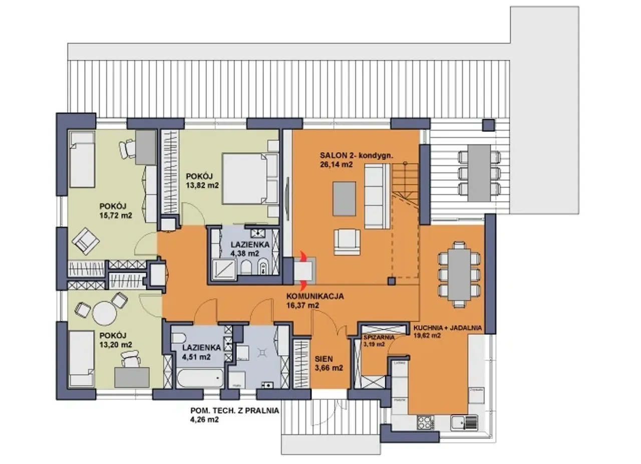 Kupując projekt w technologii murowanej powinieneś budować dom murowany. Zupełna zmiana technologii na szkieletową wymaga przeprojektowania całego budynku ( zmieniają się obciążenia, fundamenty, konstrukcja dachu). Wydamy zgodę na takie przeprojektowanie jednak wiążę się to z dużymi kosztami. Istnieją firmy wykonawcze, które podejmują się zmiany technologii budowy bezpłatnie przy skorzystaniu z ich usług wykonawczych. Zdarza się, że pracownia architektoniczna przygotowuje warianty konkretnego projektu przewidując także inne technologie. Prosimy o sprawdzenie czy istnieje poszukiwana wersja projektu, w zakładce - warianty projektu.