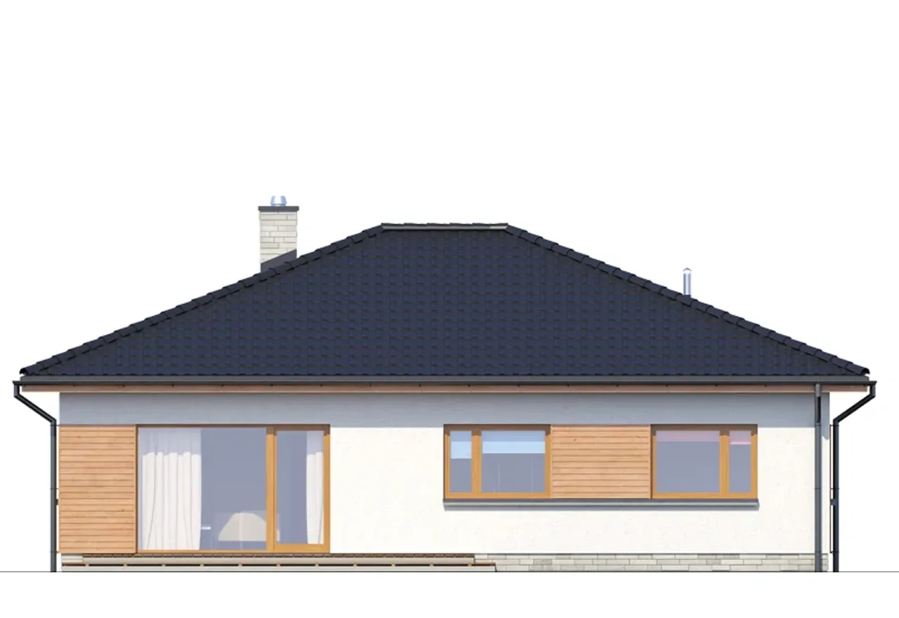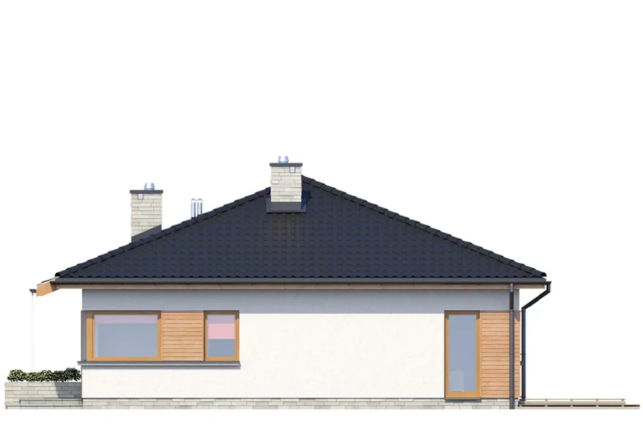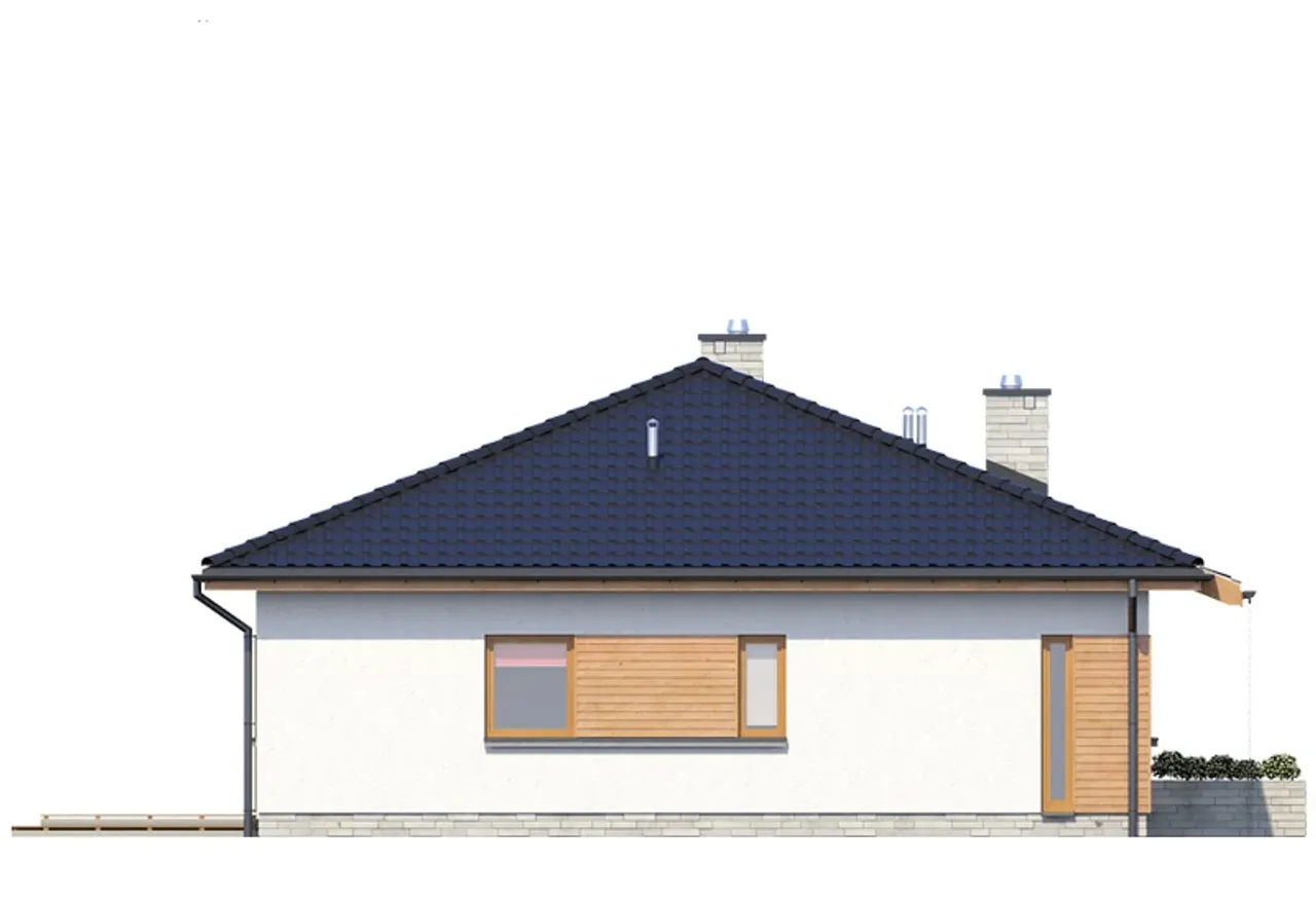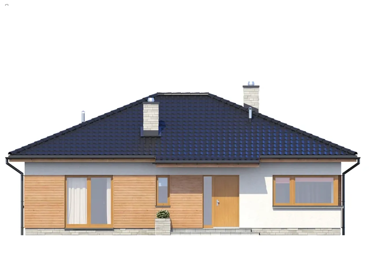 Projekt domu TK39 przedstawia dom parterowy o prostej zwięzłej bryle. Układ domu dzieli się na dwie części: dzienną i nocną. Część dzienną tworzą wiatrołap, przestronny salon z jadalnią, kuchnia oraz pom. gospodarcze. W części nocnej znajduja się trzy wygodne sypialnie oraz ogólnodostepna łazienka. Projekt domu TK39 jest wygodny i funkcjonalny.