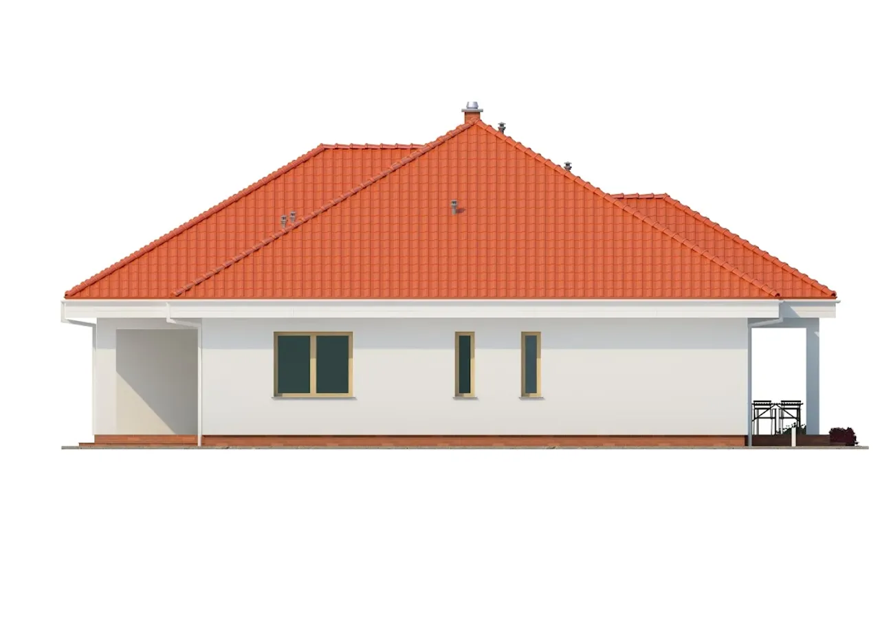 Projekt domu TK70 to dom parterowy z wbudowanym garażem jednostanowiskowym. Na parterze domu znajdują się wiatrołap, przestronny salon z jadalnią, kuchnia, cztery pokoje oraz łazienka. Obok kuchni znajduje się spiżarnia a z garażem sąsiaduje kotłownia i pralnia. Projekt domu TK70 jest przestronny i funkcjonalny.