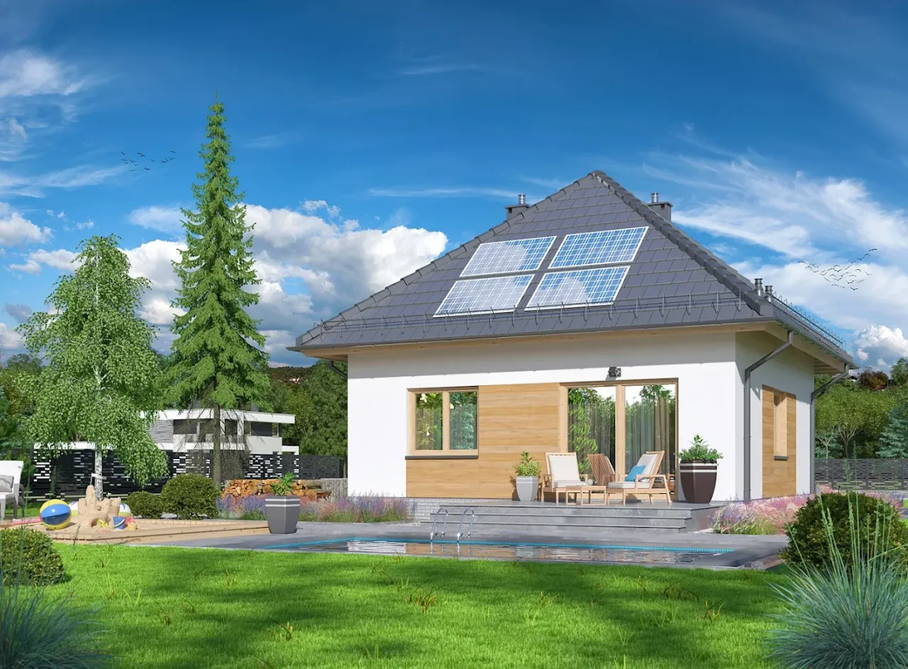 Dom wybudowany na podstawie projektu Tomik sprawdzi się idealnie na wąskich i średniej wielkości działkach. Technologia murowana, wielospadowy dach o kącie nachylenia 40° oraz brak piwnicy to rozwiązania, które docenią inwestorzy ceniący bezpieczeństwo i prostotę użytkowania, bez straty na estetyce.