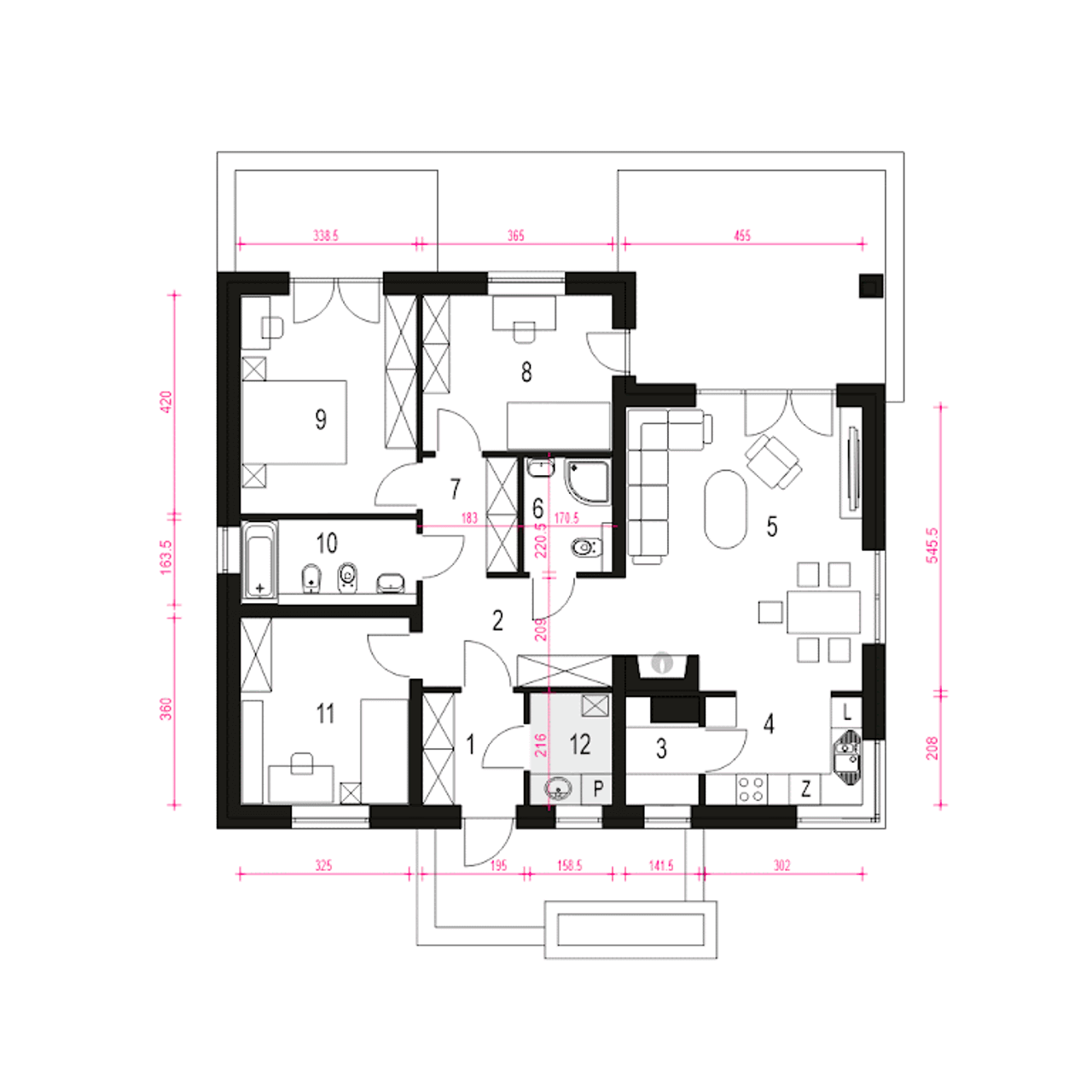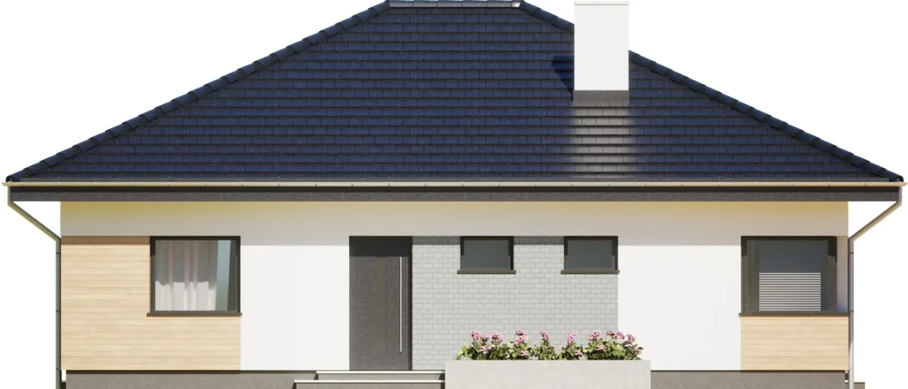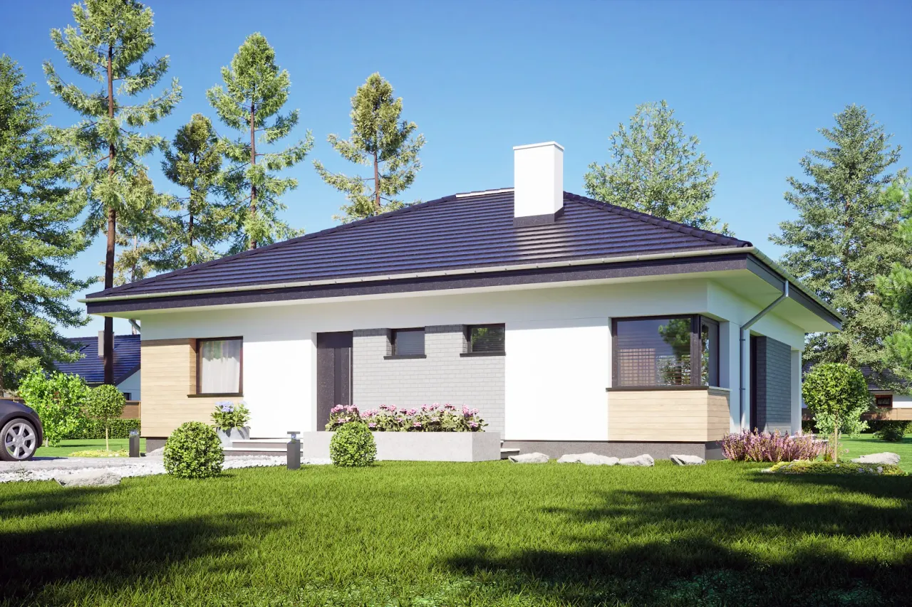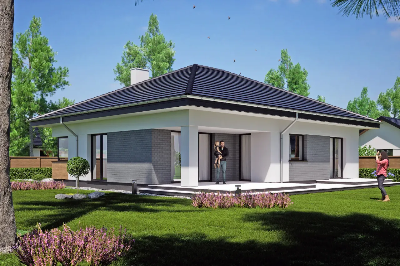 Projekt Topaz bez garażu B to interesujący wybór dla osób poszukujących przestronnego domu, który łączy nowoczesne rozwiązania z klasyczną estetyką. Widoczne jest tutaj dążenie do stworzenia funkcjonalnej przestrzeni dla rodziny, co widać w układzie pomieszczeń i starannie zaplanowanej strefie dziennej. Szczególnie przyciąga uwagę przestronny salon połączony z jadalnią oraz wygodna kuchnia, co sprzyja codziennym spotkaniom i wspólnemu spędzaniu czasu. Dodatkowym atutem jest obecność wygodnych sypialni, które pozwalają na prywatność i odpoczynek dla każdego domownika. Dobrze przemyślany projekt zachęca do rozważenia go jako potencjalnego miejsca na nowe życie rodzinne.