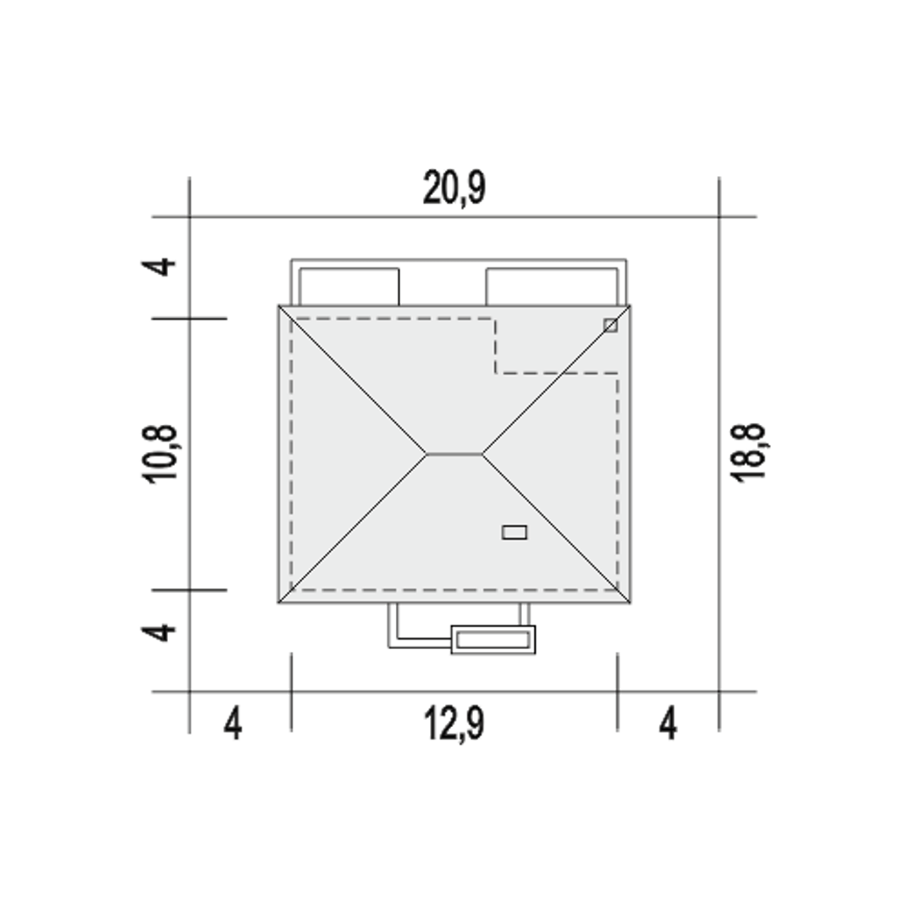 Wypełnij formularz i otrzymaj rysunki w pdf z dokładnymi wymiarami budynku i pomieszczeń (długość, szerokość, wysokość) dla projektu Topaz bez garażu B