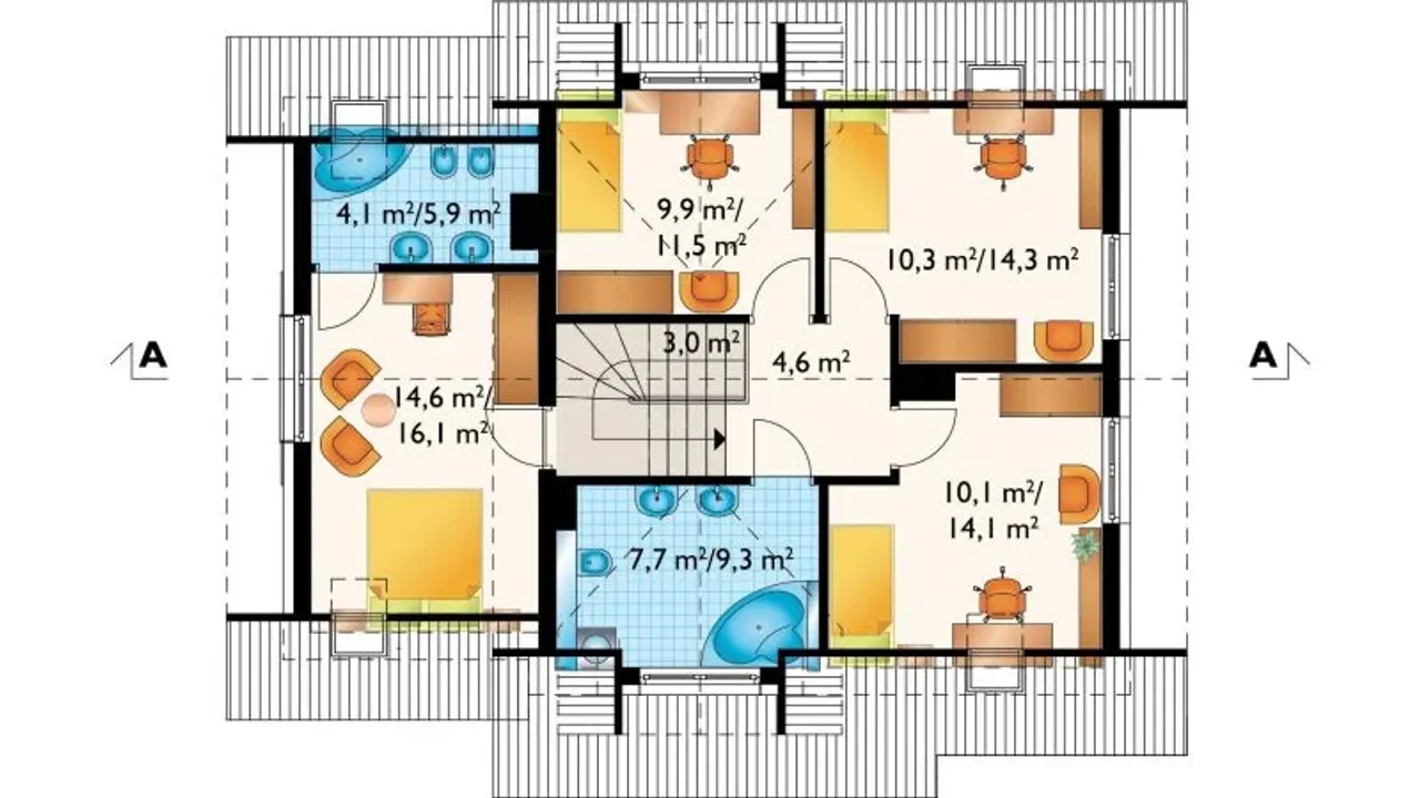 - elewacje - pokazują dokładny wygląd domu od frontu, z tyłu i z boków