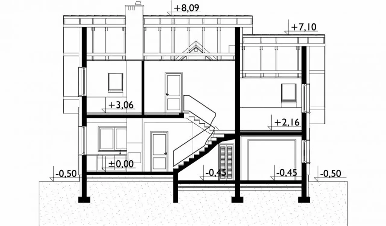 - przekroje - pokazują wszystkie elementy budynku po przecięciu go wzdłuż lub w poprzek od dachu do fundamentów tj. warstwy podłogi, stropów i dachu