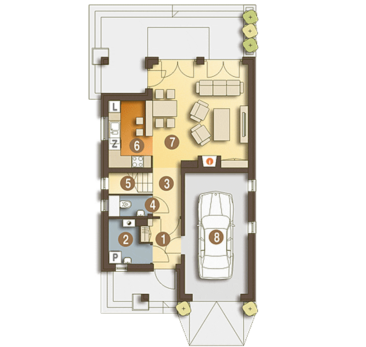 Wypełnij formularz i otrzymaj rysunki w pdf z dokładnymi wymiarami budynku i pomieszczeń (długość, szerokość, wysokość) dla projektu Tosia z garażem 1-st. A