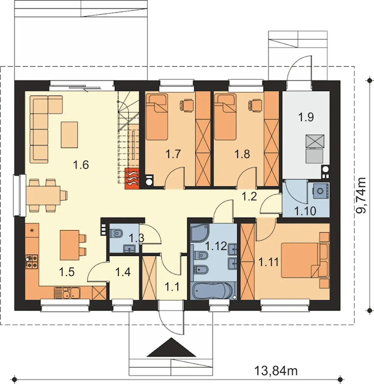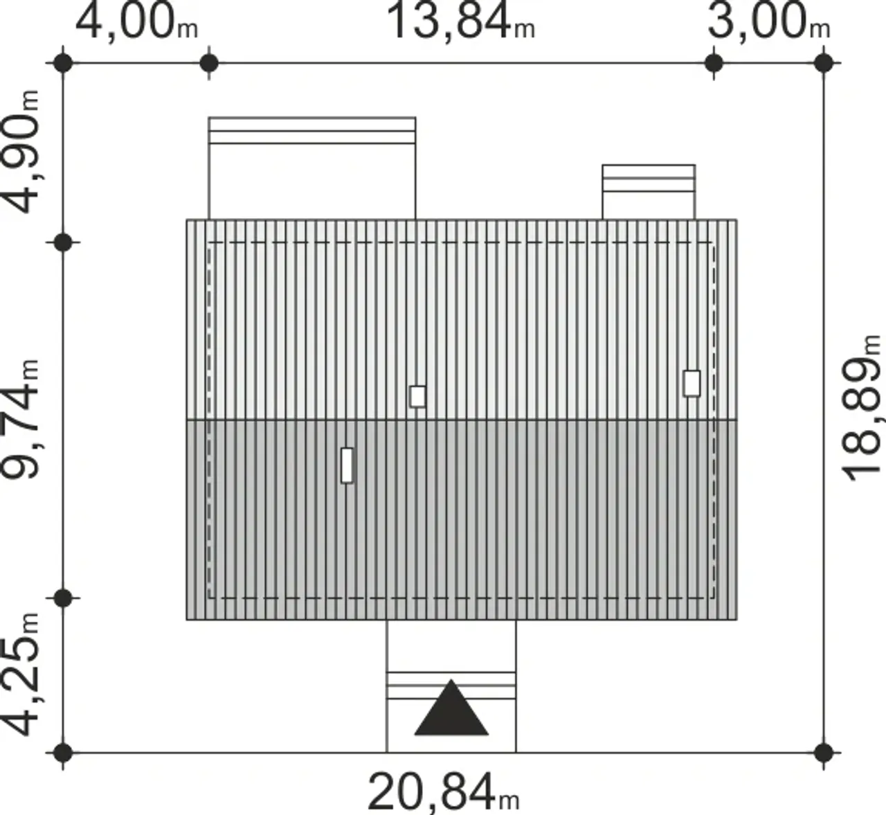 | Szerokość budynku 13.84 m |