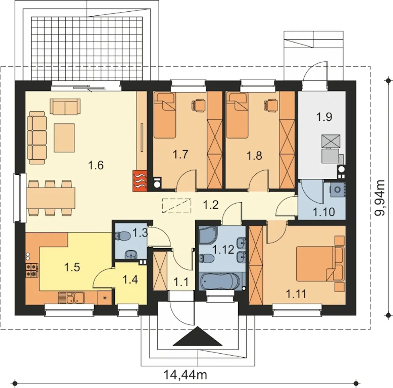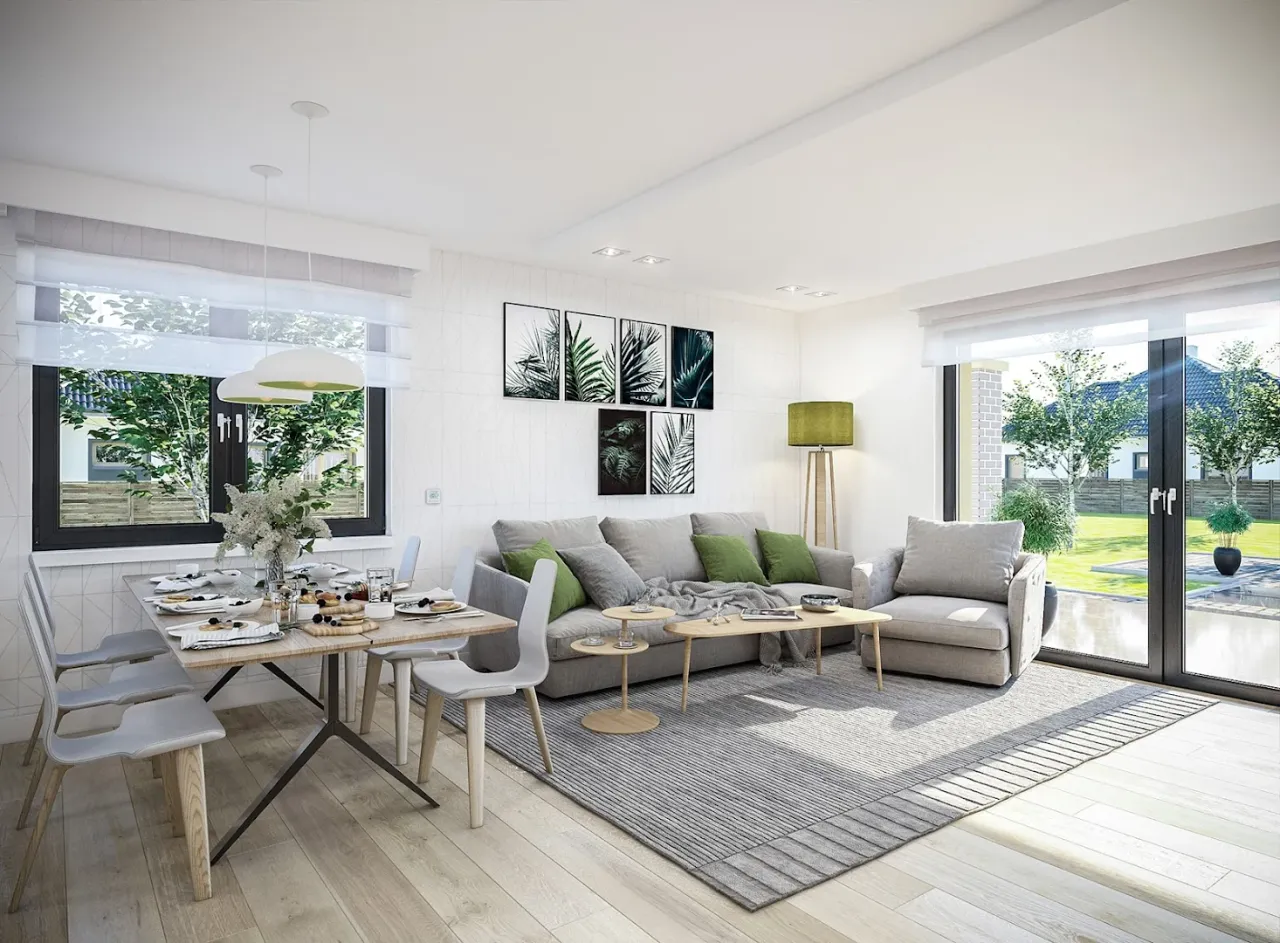 Projekt domu Tracja 5 to propozycja dla rodzin szukających praktycznych rozwiązań, intuicyjnych układów i komfortu użytkowania na co dzień. Duża kotłownia i zintegrowana pralnia w pełni odpowiadają aktualnym standardom, a bezpośredni dostęp do tarasu pozwala na relaks na świeżym powietrzu przez cały rok.