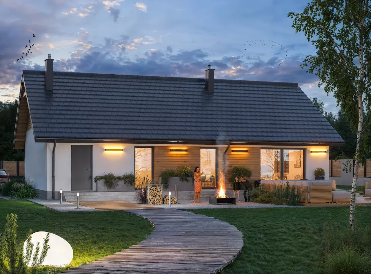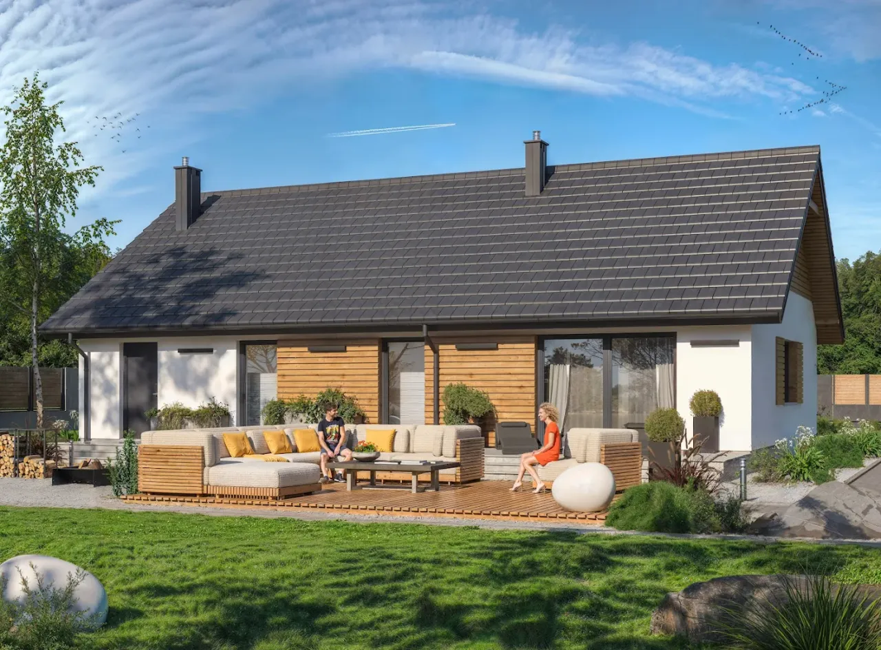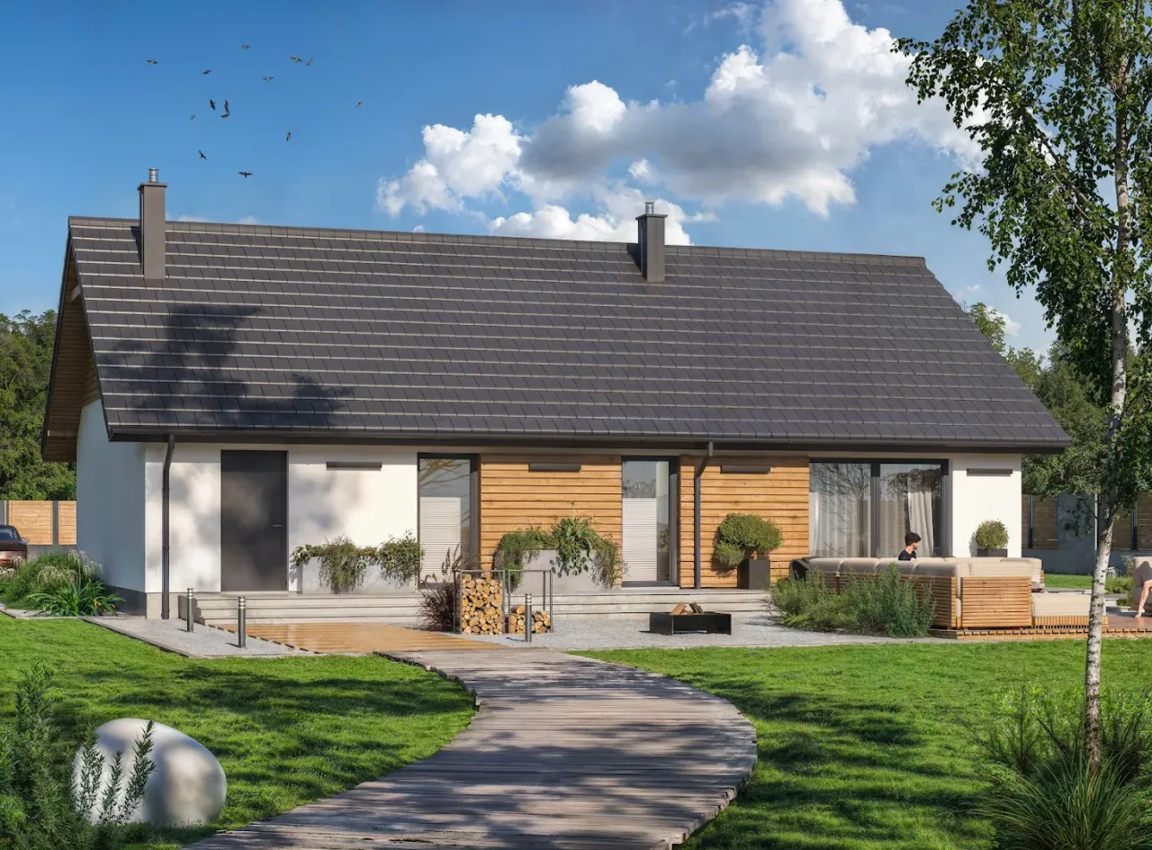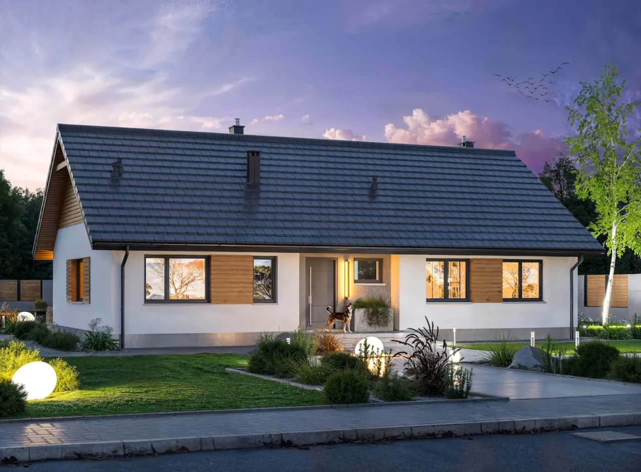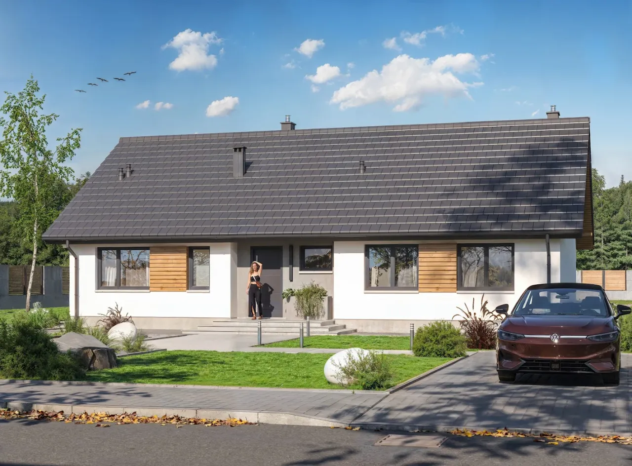 - Pokrycie dachu: dachówka ceramiczna lub cementowa.