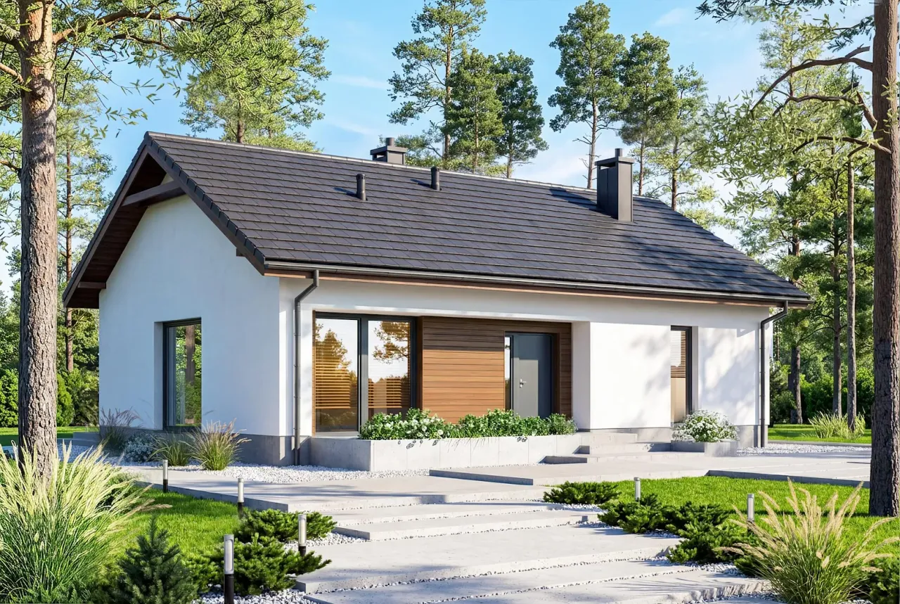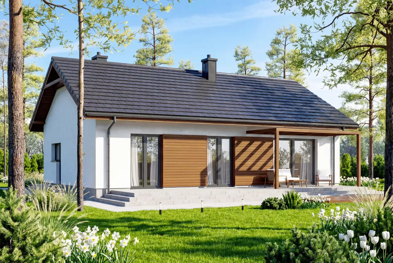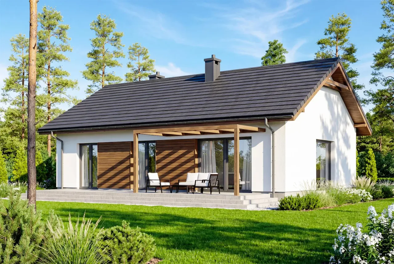 - Pokrycie dachu: dachówką betonową lub ceramiczną.