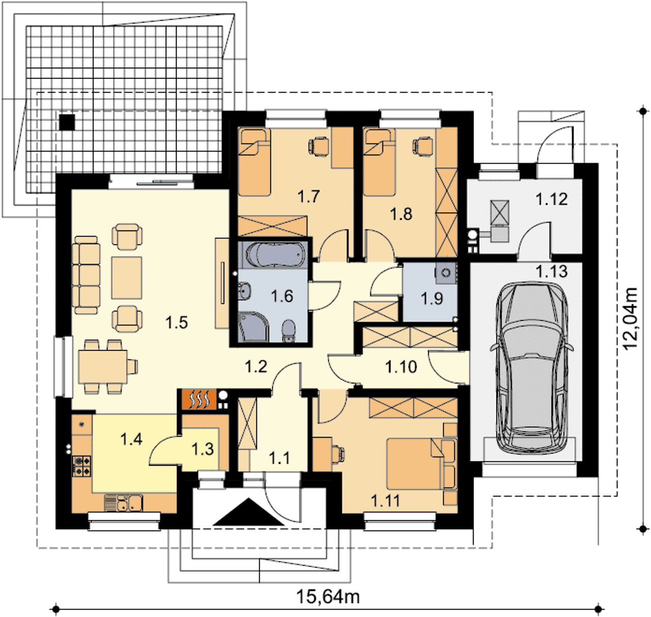 Rodzaj dachu wielospadowy |
