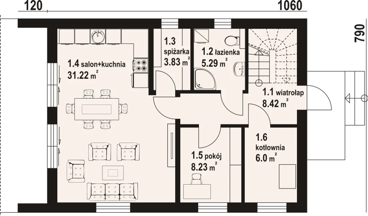 - opisu architektonicznego zawierającego m.in. opis przyjętych rozwiązań, zestawienia powierzchni (użytkowej, zabudowy, netto), kubatury oraz powierzchni poszczególnych pomieszczeń