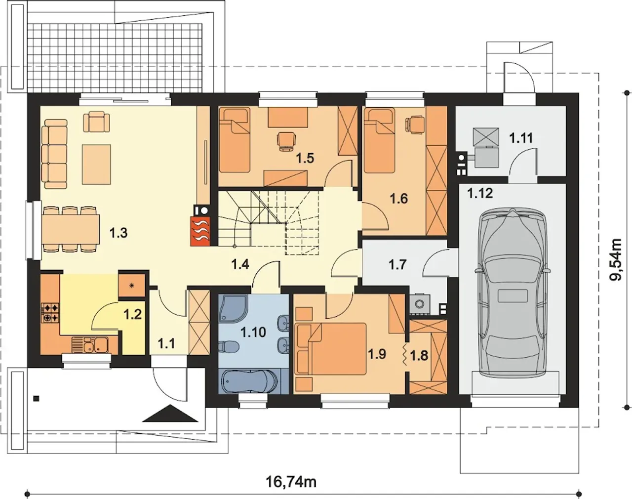 Długość budynku 9.54 m |