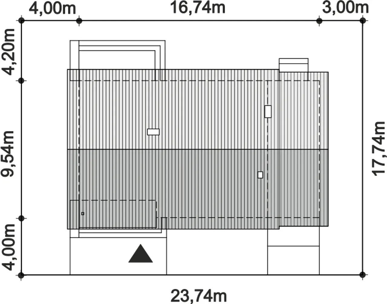 Szerokość budynku 16.74 m |