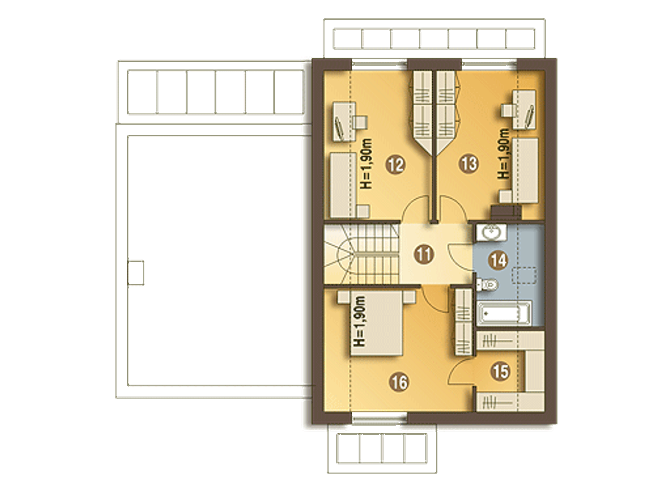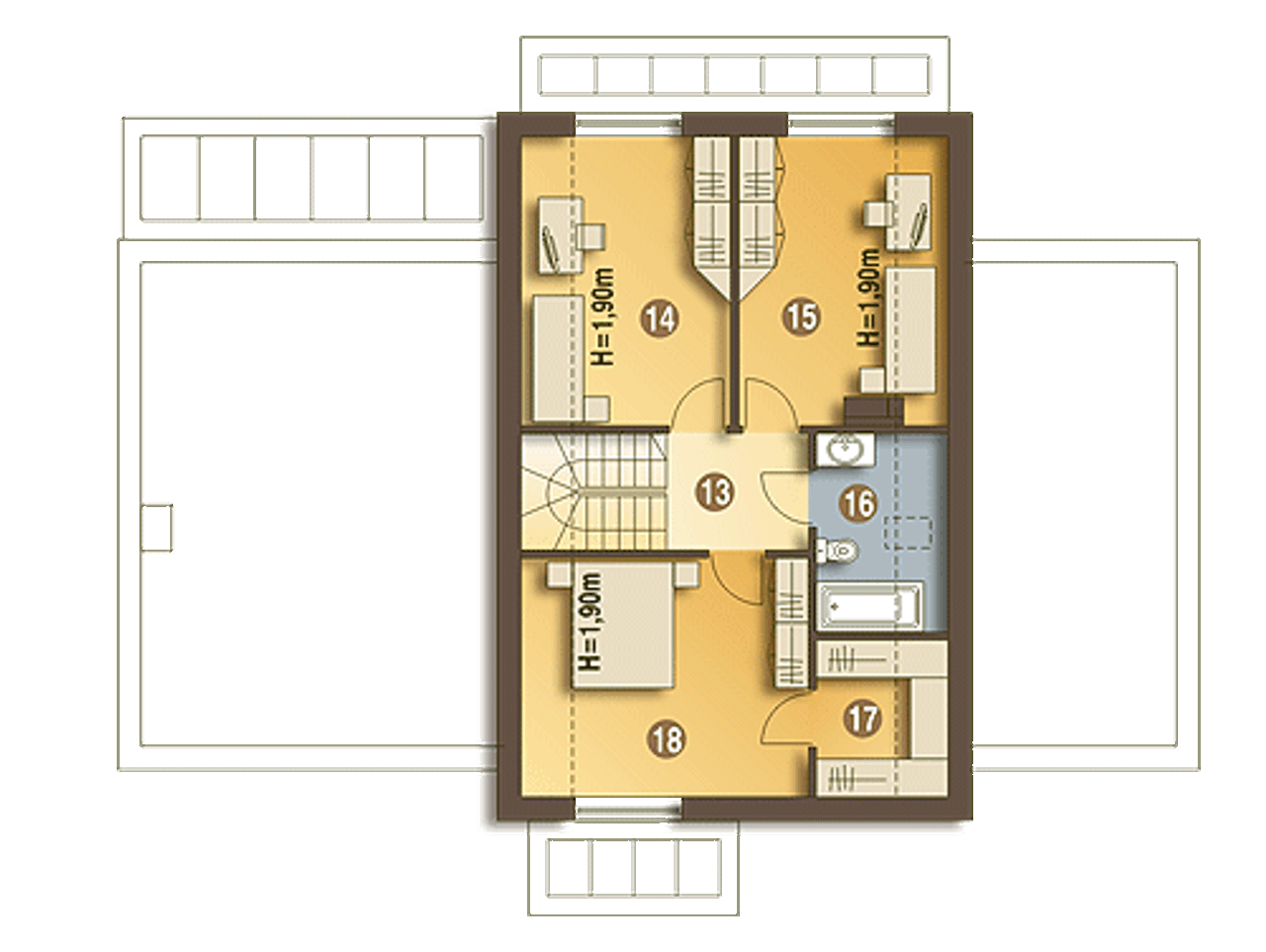 Wypełnij formularz i otrzymaj rysunki w pdf z dokładnymi wymiarami budynku i pomieszczeń (długość, szerokość, wysokość) dla projektu Tytus bez garażu B