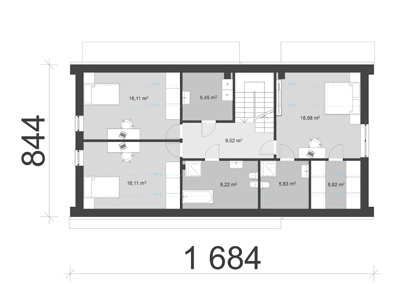 Wypełnij formularz i otrzymaj rysunki w pdf z dokładnymi wymiarami budynku i pomieszczeń (długość, szerokość, wysokość) dla projektu UA100