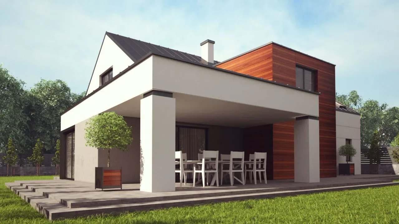 Szukasz projektu domu, który łączy nowoczesny design z komfortem życia na jednym poziomie? Poznaj projekt domu UA103 - współczesny dom parterowy idealny dla rodziny ceniącej wygodę, przestrzeń i energooszczędność. To propozycja dla tych, którzy pragną zamieszkać w funkcjonalnym, przytulnym i stylowym domu bez schodów, otwartym na ogród oraz otoczenie natury.