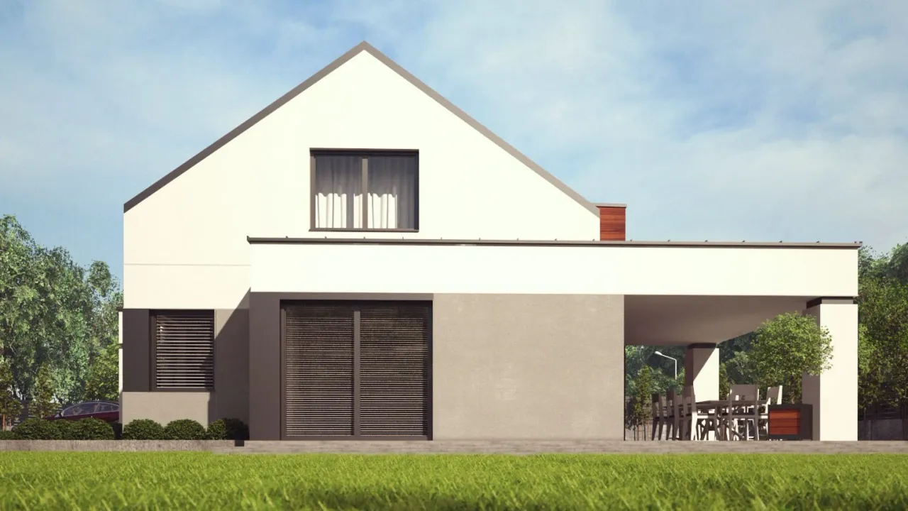 Wyobraź sobie poranki w przestronnym, jasnym salonie z widokiem na ogród, gdzie kawa smakuje lepiej, a bliskość natury koi zmysły. Projekt UA103 otwiera się na taras i otoczenie, sprzyjając relaksowi na świeżym powietrzu oraz integracji życia domowego z ogrodem. To dom, który pozwala cieszyć się każdą chwilą spędzoną wspólnie - niezależnie od pory roku.