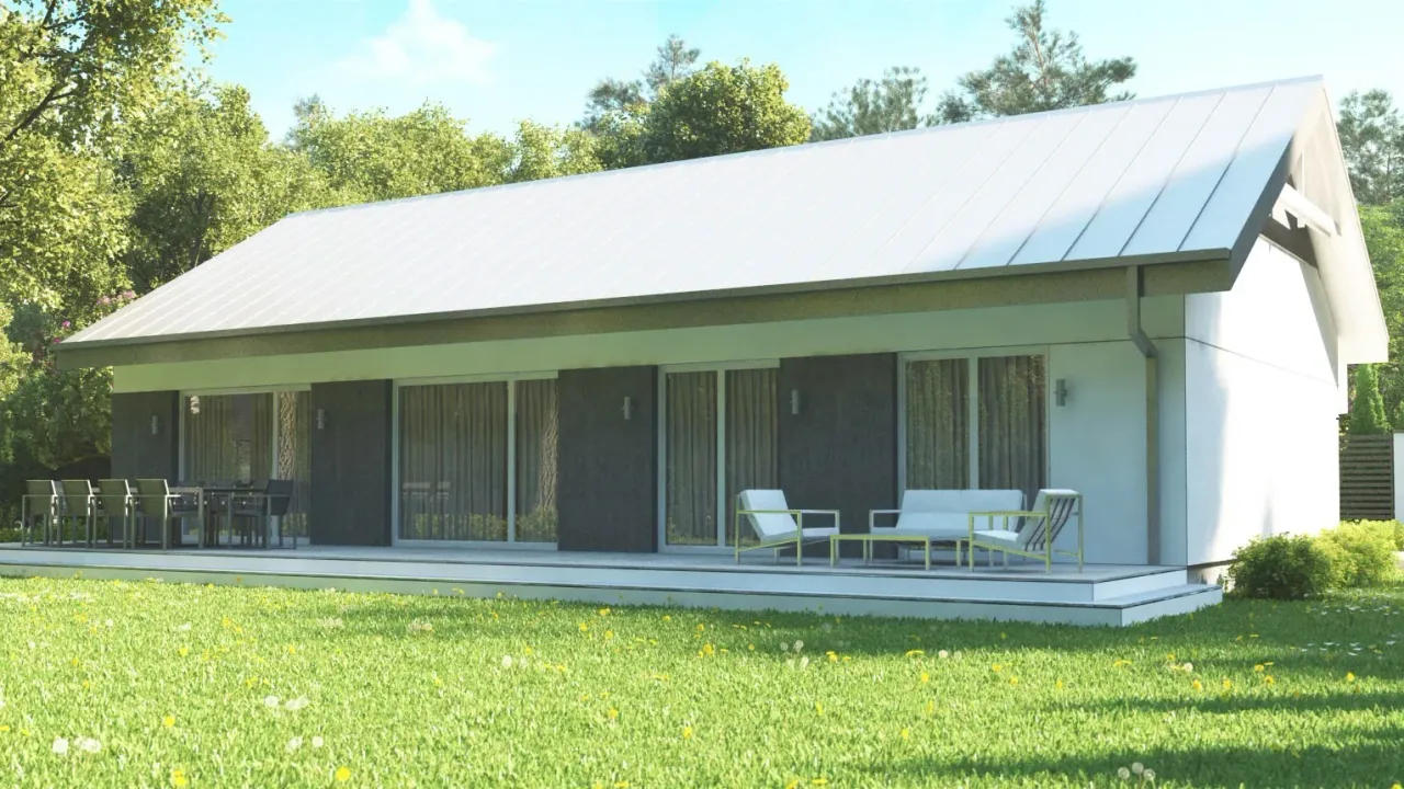 Projekt UA113 łączy nowoczesność z komfortem, tworząc idealne warunki do pracy, relaksu i rodzinnego życia. To dom parterowy, który znakomicie sprawdzi się zarówno na wąskiej działce, jak i w otulinie zieleni podmiejskiej. Przekonaj się, jak ten projekt ułatwi Ci codzienność i spełni marzenie o wymarzonym domu.