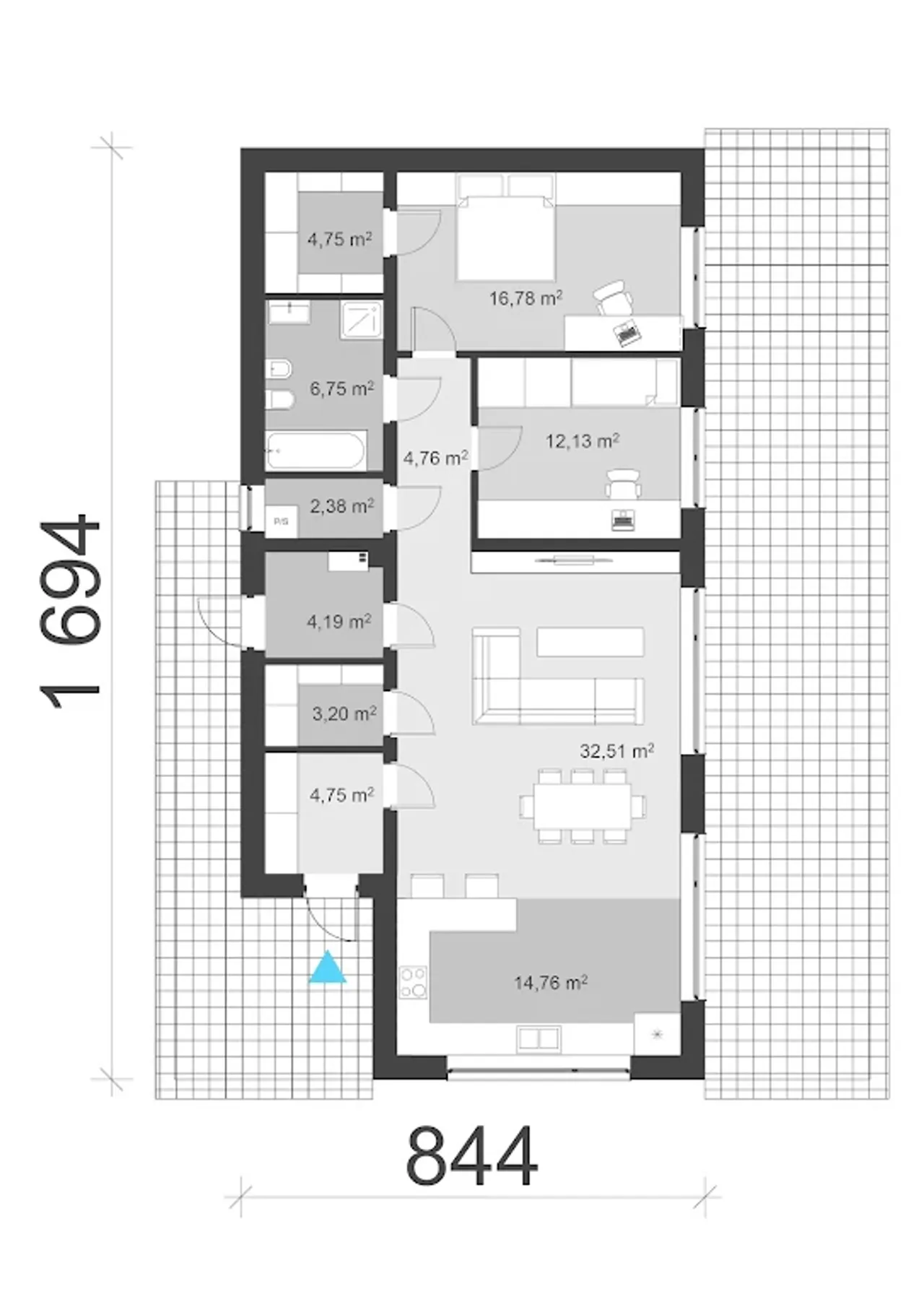 Budując dom parterowy UA113, zyskujesz także pewność optymalnych kosztów eksploatacji. Dzięki nowoczesnym rozwiązaniom technologicznym, takim jak solidna izolacja termiczna, przemyślane rozmieszczenie okien i praktyczne doświetlenie wnętrz, Twój dom będzie nie tylko przyjazny dla środowiska, ale także tani w utrzymaniu. Projekt UA113 docenisz zarówno na kameralnej działce w mieście, jak i na obrzeżach - to uniwersalny wybór dla wszystkich, którzy stawiają na innowacyjność, funkcjonalność i bezpieczeństwo inwestycji.