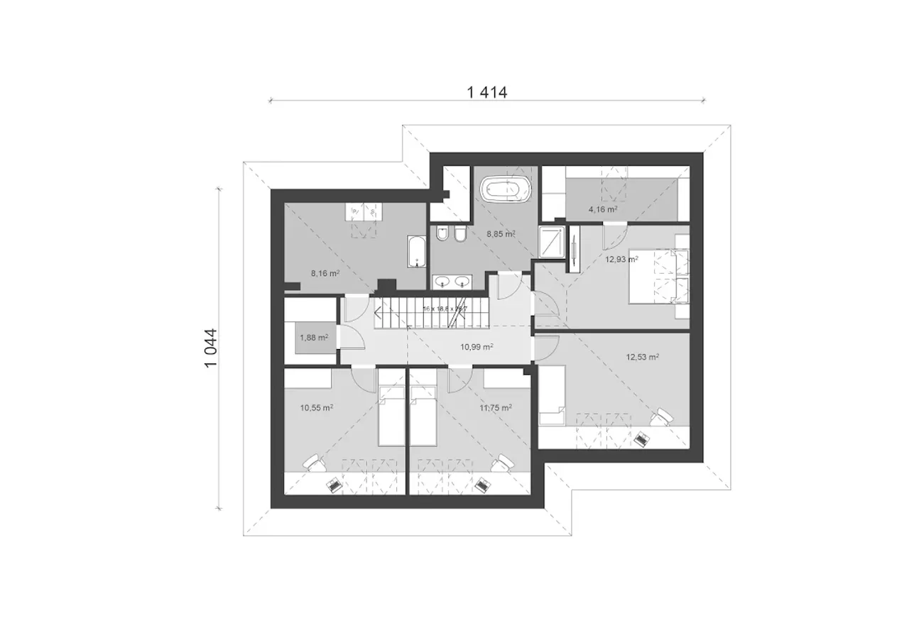 Wypełnij formularz i otrzymaj rysunki w pdf z dokładnymi wymiarami budynku i pomieszczeń (długość, szerokość, wysokość) dla projektu UA116