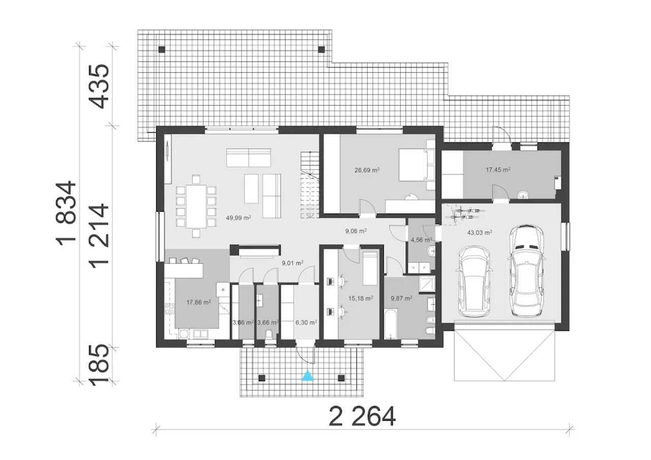 5. Pokój dzienny + jadalnia | 49,99 m² |