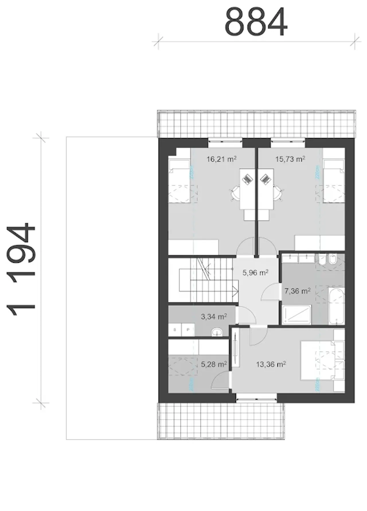 Powierzchnia dachu 122 m² |