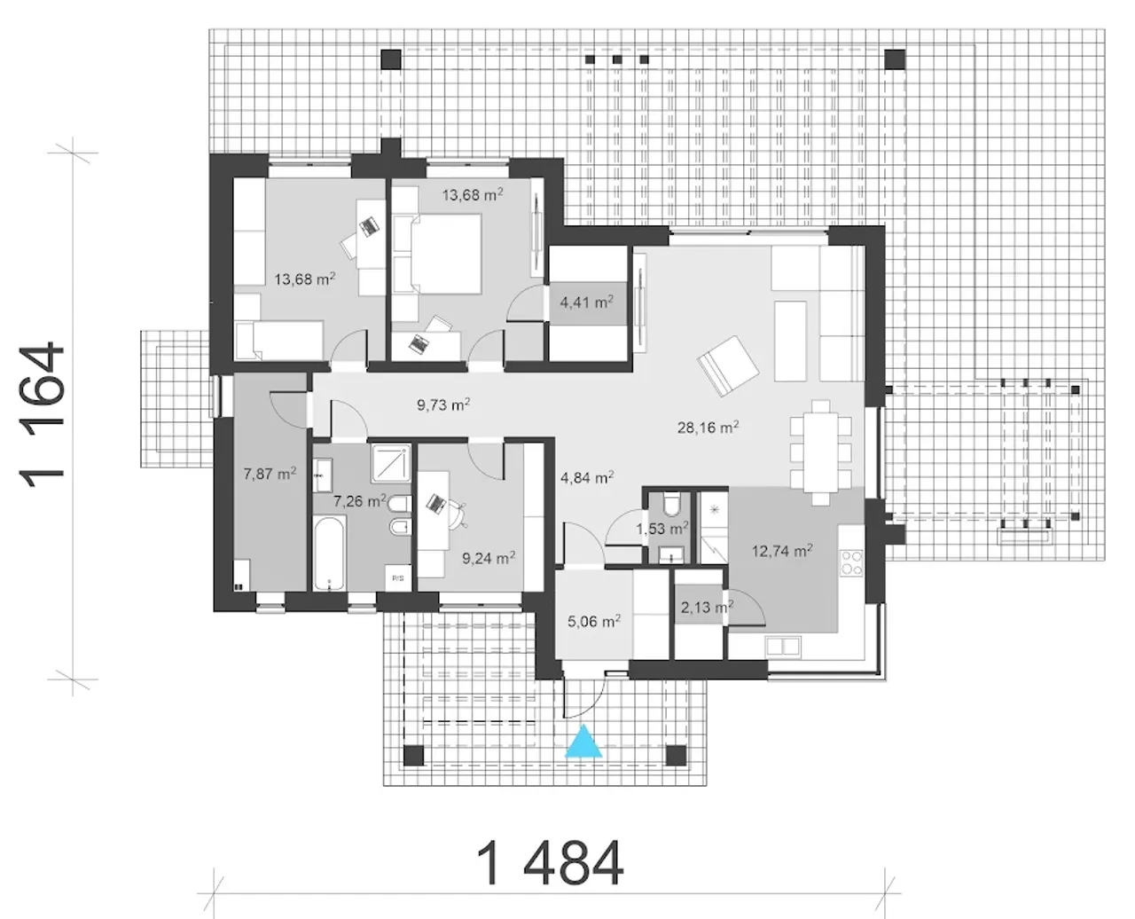Wypełnij formularz i otrzymaj rysunki w pdf z dokładnymi wymiarami budynku i pomieszczeń (długość, szerokość, wysokość) dla projektu UA148
