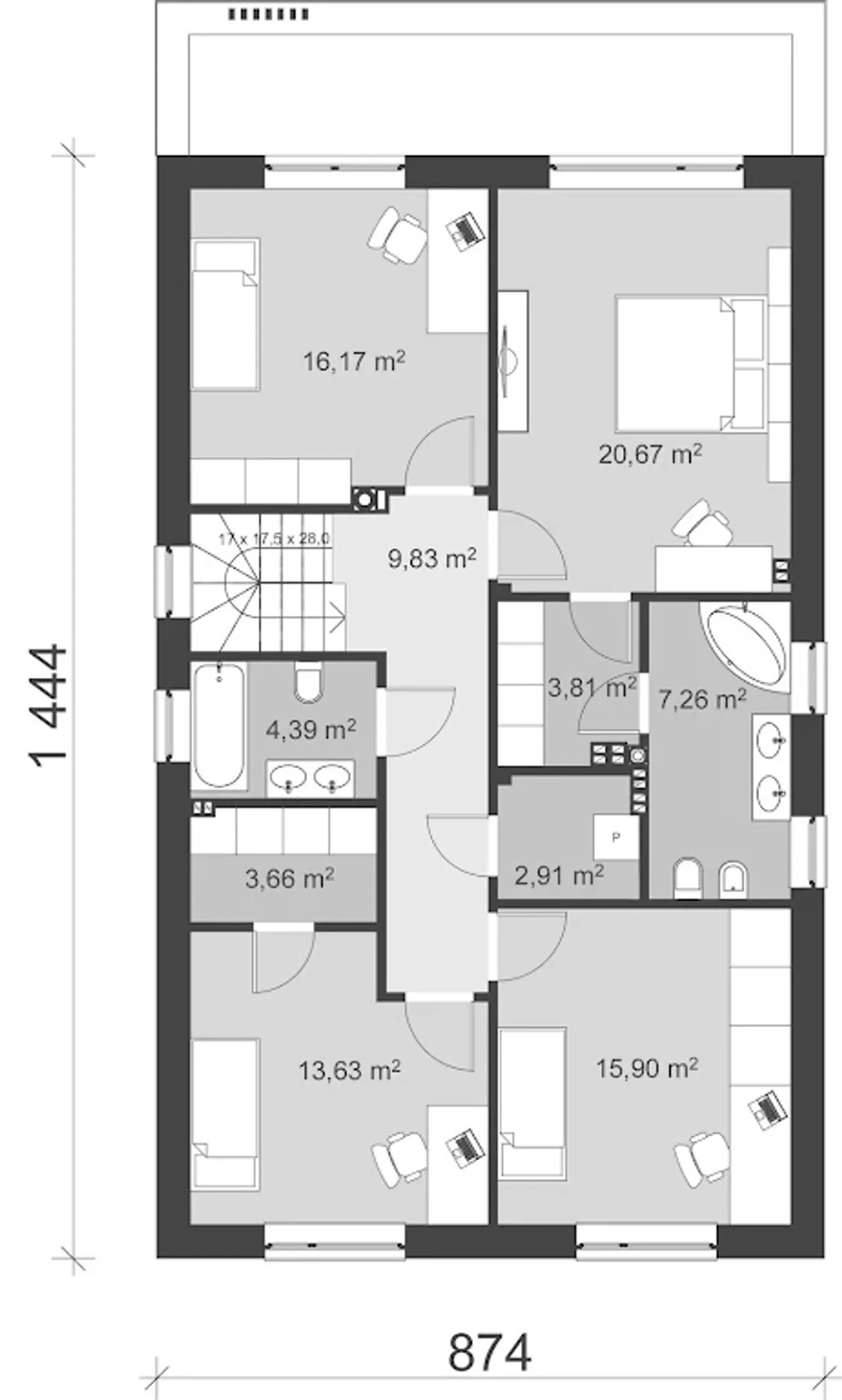 Szerokość budynku 8.74 m |