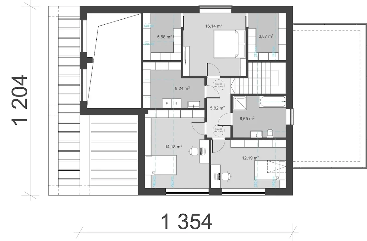 Kupując projekt w technologii murowanej powinieneś budować dom murowany. Zupełna zmiana technologii na szkieletową wymaga przeprojektowania całego budynku ( zmieniają się obciążenia, fundamenty, konstrukcja dachu). Wydamy zgodę na takie przeprojektowanie jednak wiążę się to z dużymi kosztami. Istnieją firmy wykonawcze, które podejmują się zmiany technologii budowy bezpłatnie przy skorzystaniu z ich usług wykonawczych. Zdarza się, że pracownia architektoniczna przygotowuje warianty konkretnego projektu przewidując także inne technologie. Prosimy o sprawdzenie czy istnieje poszukiwana wersja projektu, w zakładce - warianty projektu.