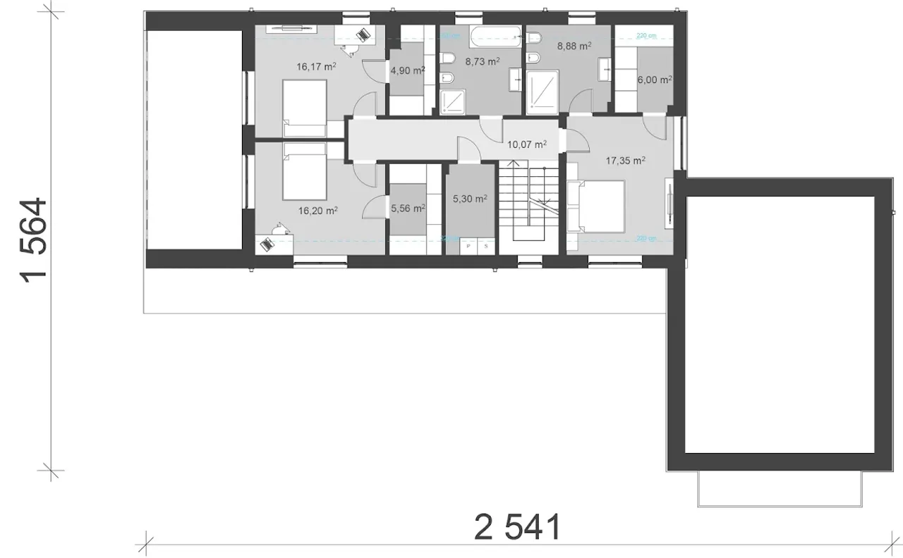 Wypełnij formularz i otrzymaj rysunki w pdf z dokładnymi wymiarami budynku i pomieszczeń (długość, szerokość, wysokość) dla projektu uA176v1